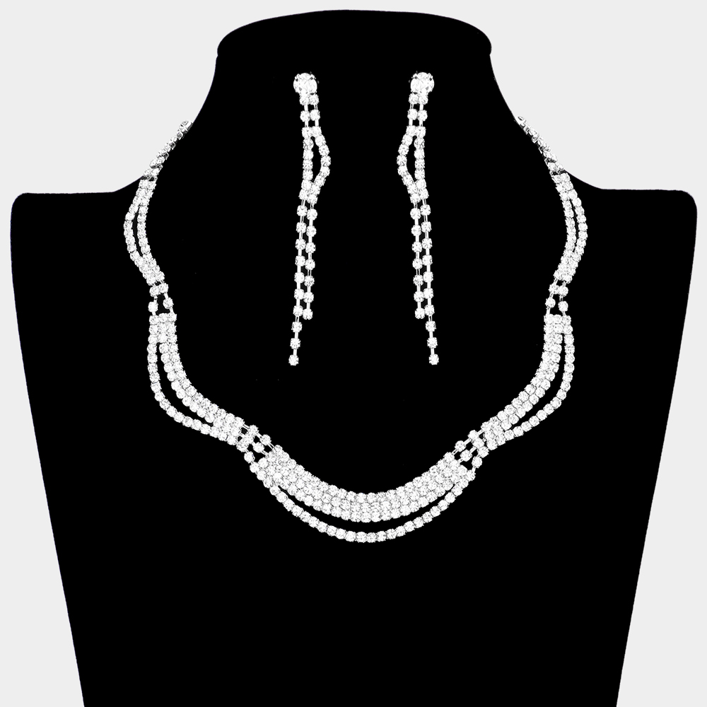 Teardrop Pendant Accent Rhinestone Paved Jewelry Set