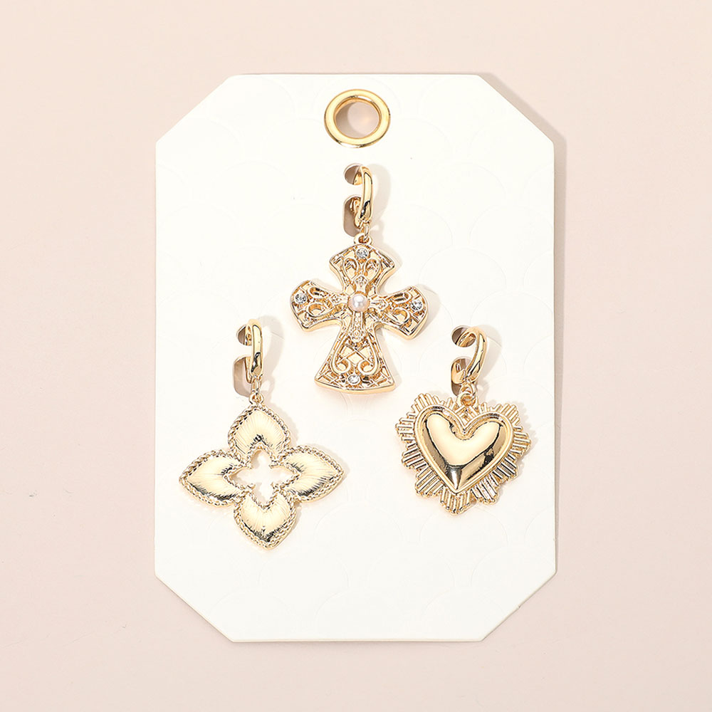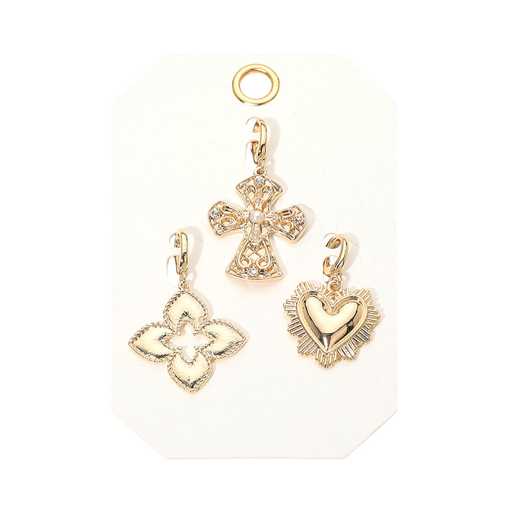 Details • Size : 1.6" L - 1.8" L • Discover a refined 3-piece pendant charm set featuring a heart, cross and floral motif, ideal for customizing necklaces or bracelets. A stylish gift option that adds a personal touch to everyday or special occasion accessories with timeless detail and beauty. • Lead and Nickel Compliant