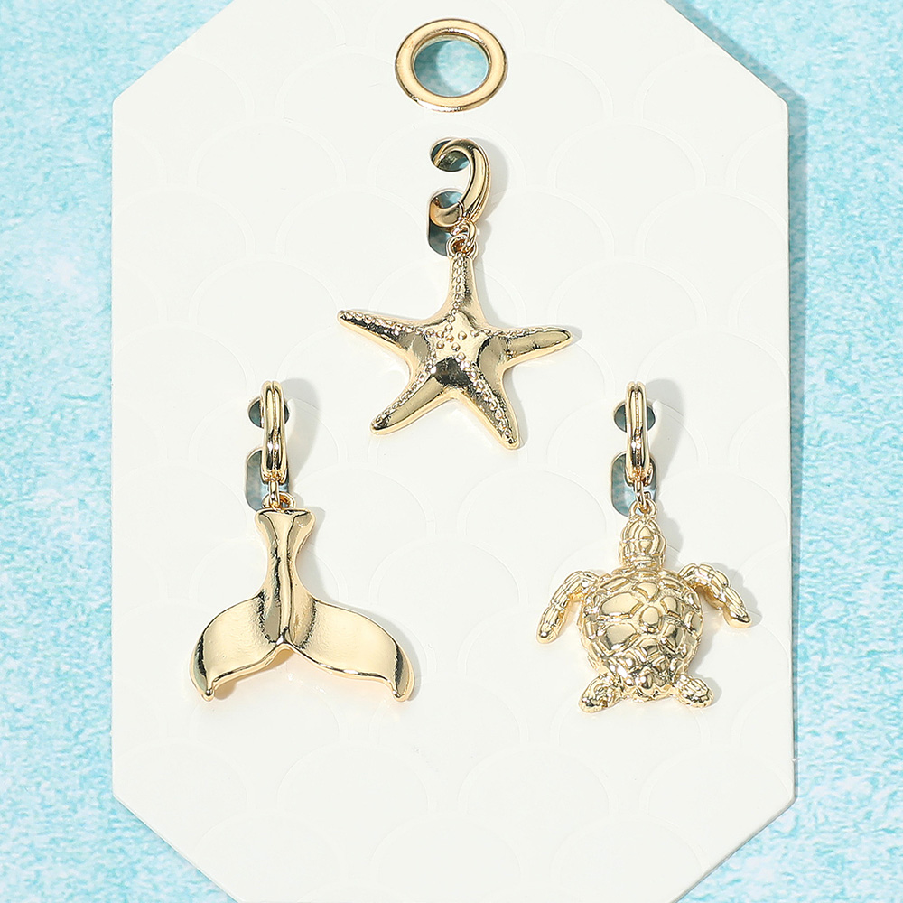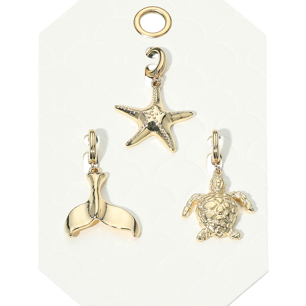 Details • Size : 1.6" L - 1.7" L • Complete your accessory collection with this sea life charm set featuring a starfish, turtle, and whale tail design. Perfect for keychains, bracelets, or necklaces, these lightweight pendants bring a touch of ocean-inspired style. Ideal for beach lovers and unique gift ideas. • Lead and Nickel Compliant