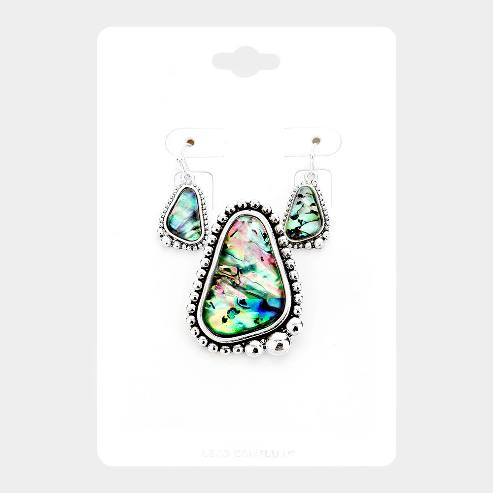 Antique Metal Abalone Pointed Butterfly Dangle Earrings