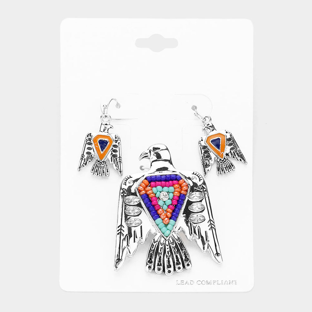 Boho Bead Accented Aztec Bird Magnetic Pendant Set