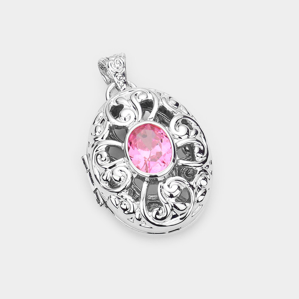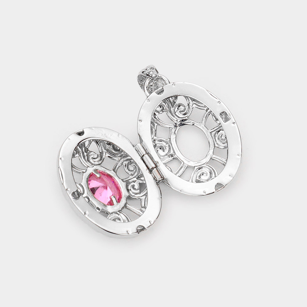 CZ Stone Embellished Filigree Detail Religious Oval Medallion Accent Chain Bracelet