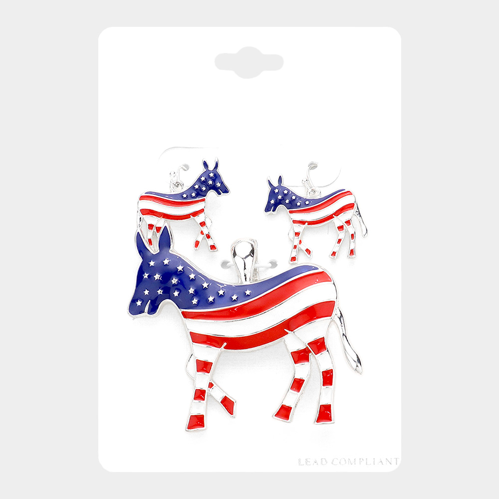 Enamel American USA Flag Democrat Donkey Magnetic Pendant Set