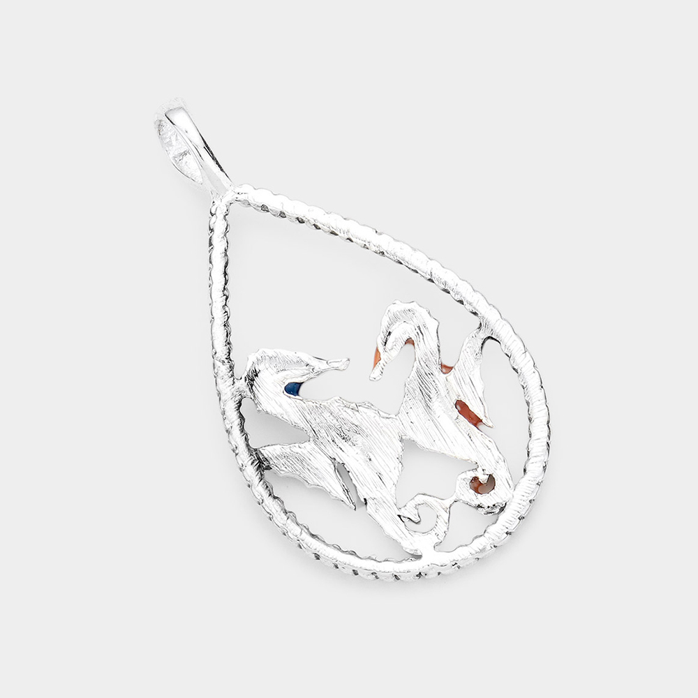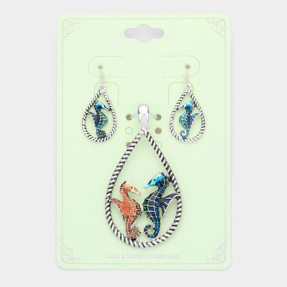 Enamel Seahorse Accented Open Teardrop Pendant Set