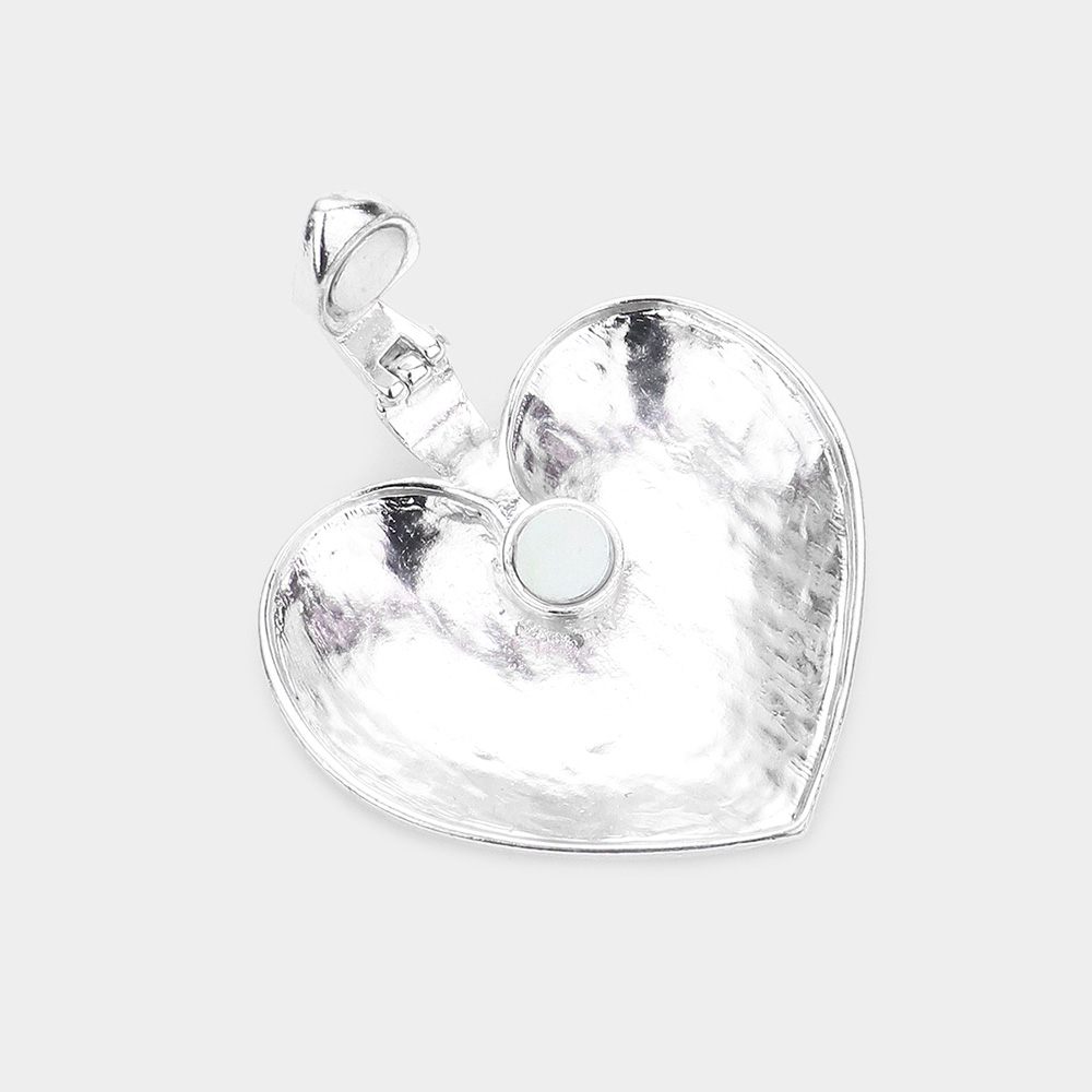 Heart Stone Tip Antique Metal Hinged Cuff Bracelet