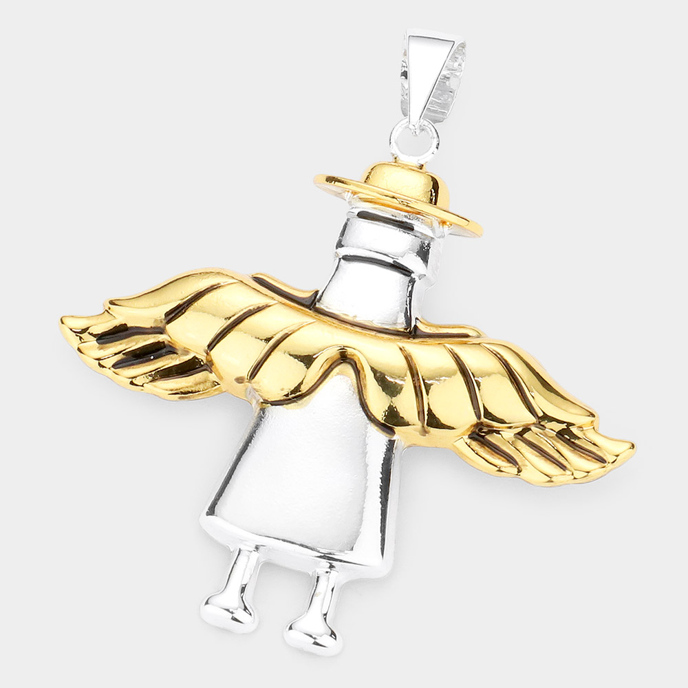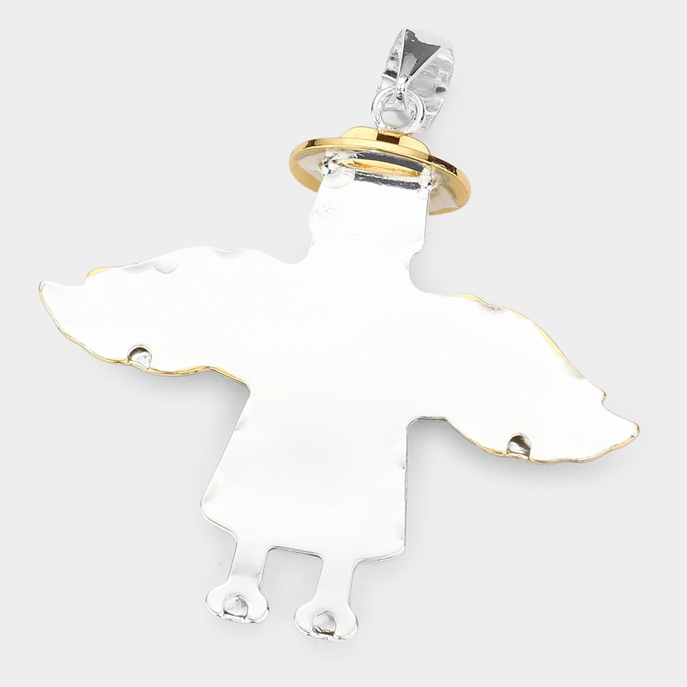 Oval CZ Stone Pendant Pointed 14K Gold Plated Two Tone Chunky Chain Necklace