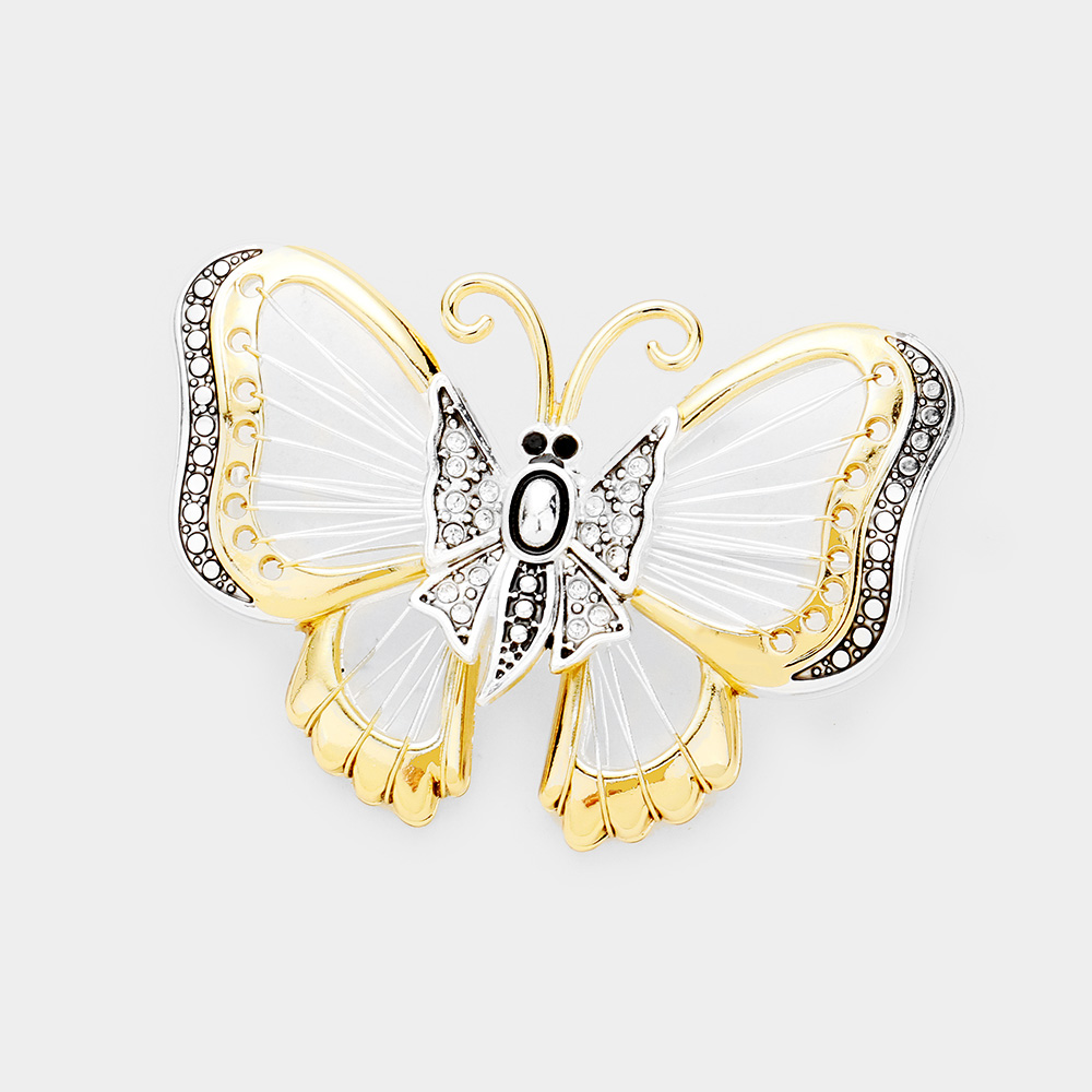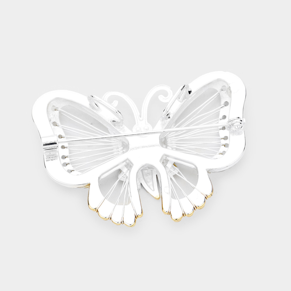 Pearl Rhinestone Pave Butterfly Pin Brooch