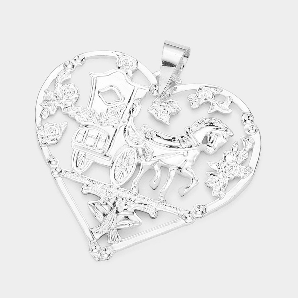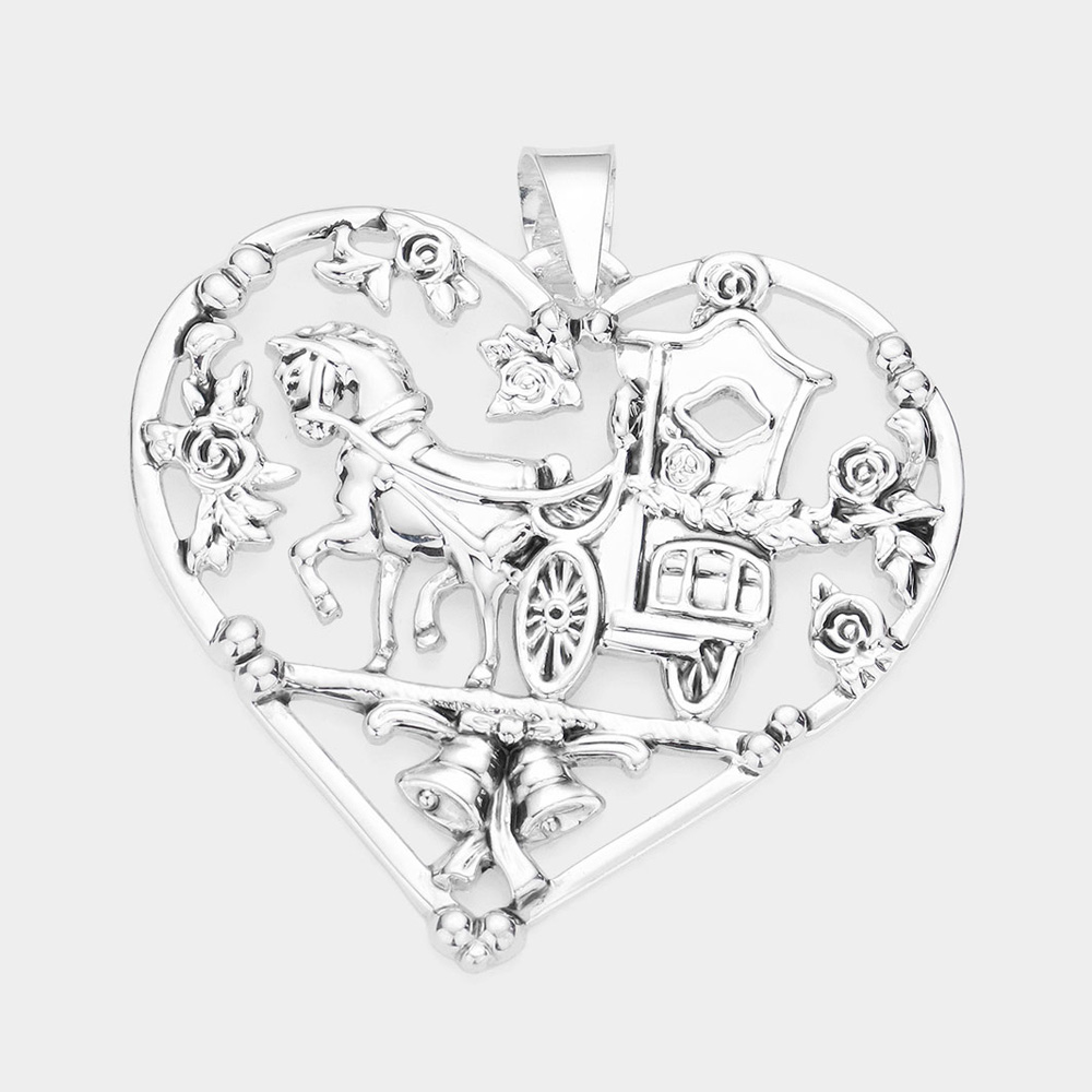 Metal Carriage Christmas Jingle Bell Accented Heart Pendant