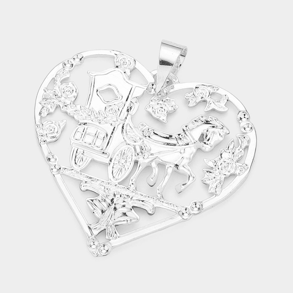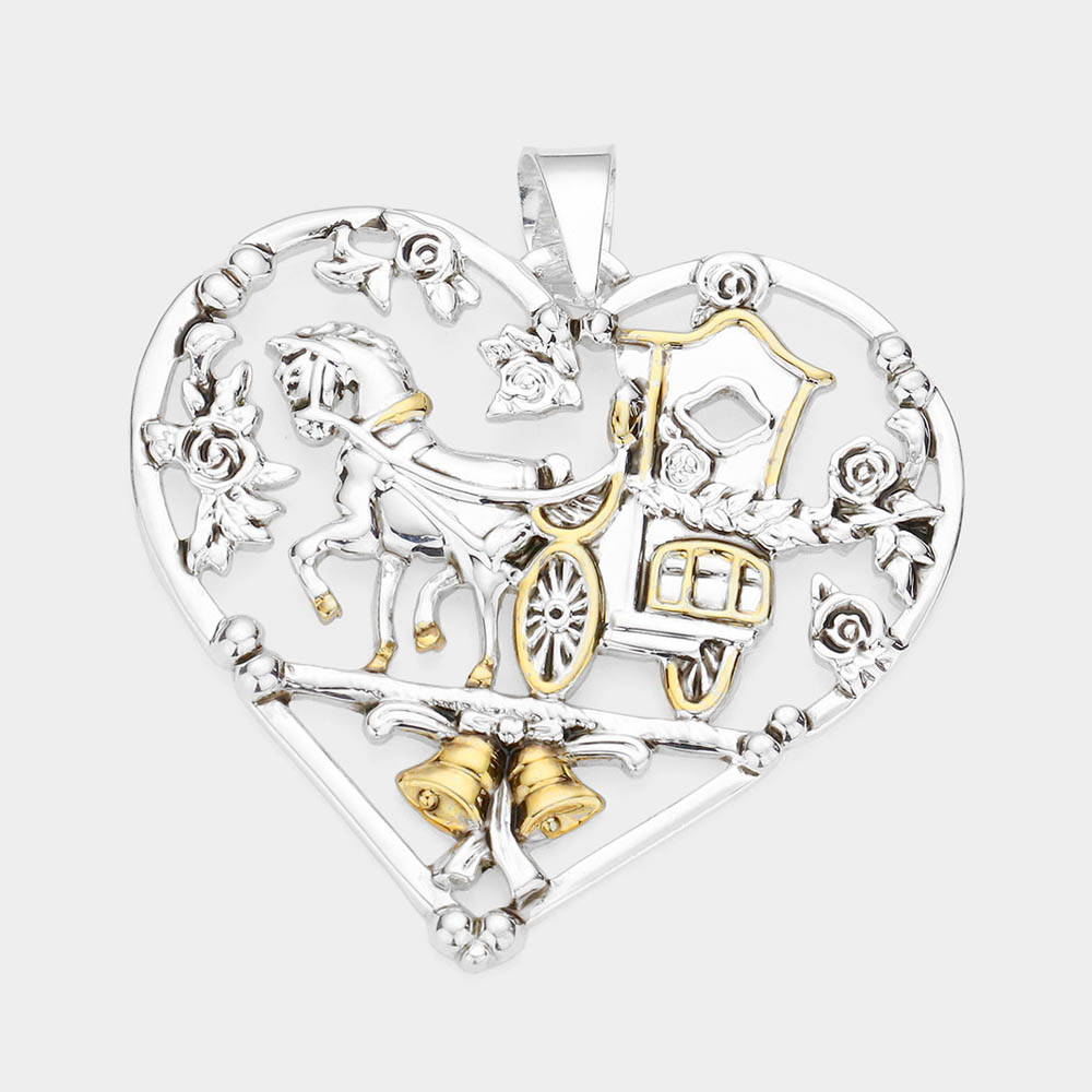 Metal Carriage Christmas Jingle Bell Accented Heart Pendant