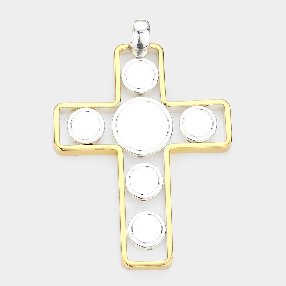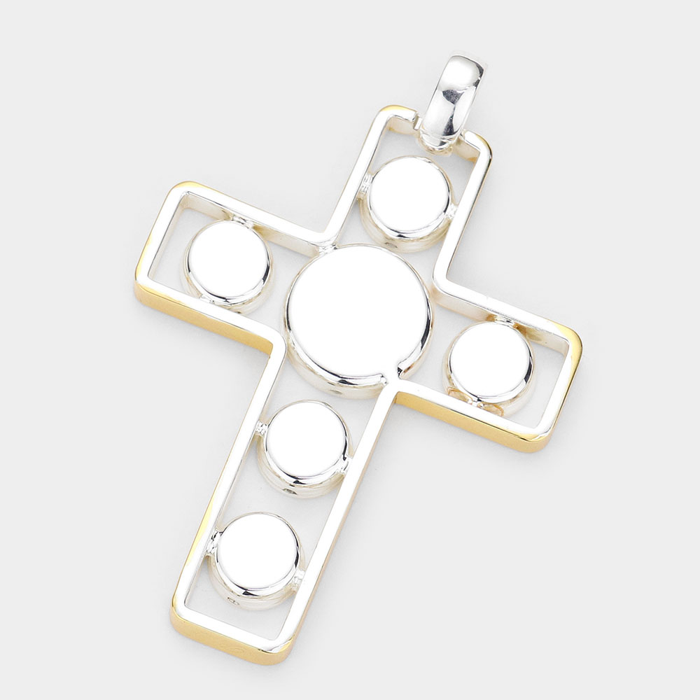 Hammered Metal Stone Paved Heart Cross Pendant Pointed Triple Layered Necklace
