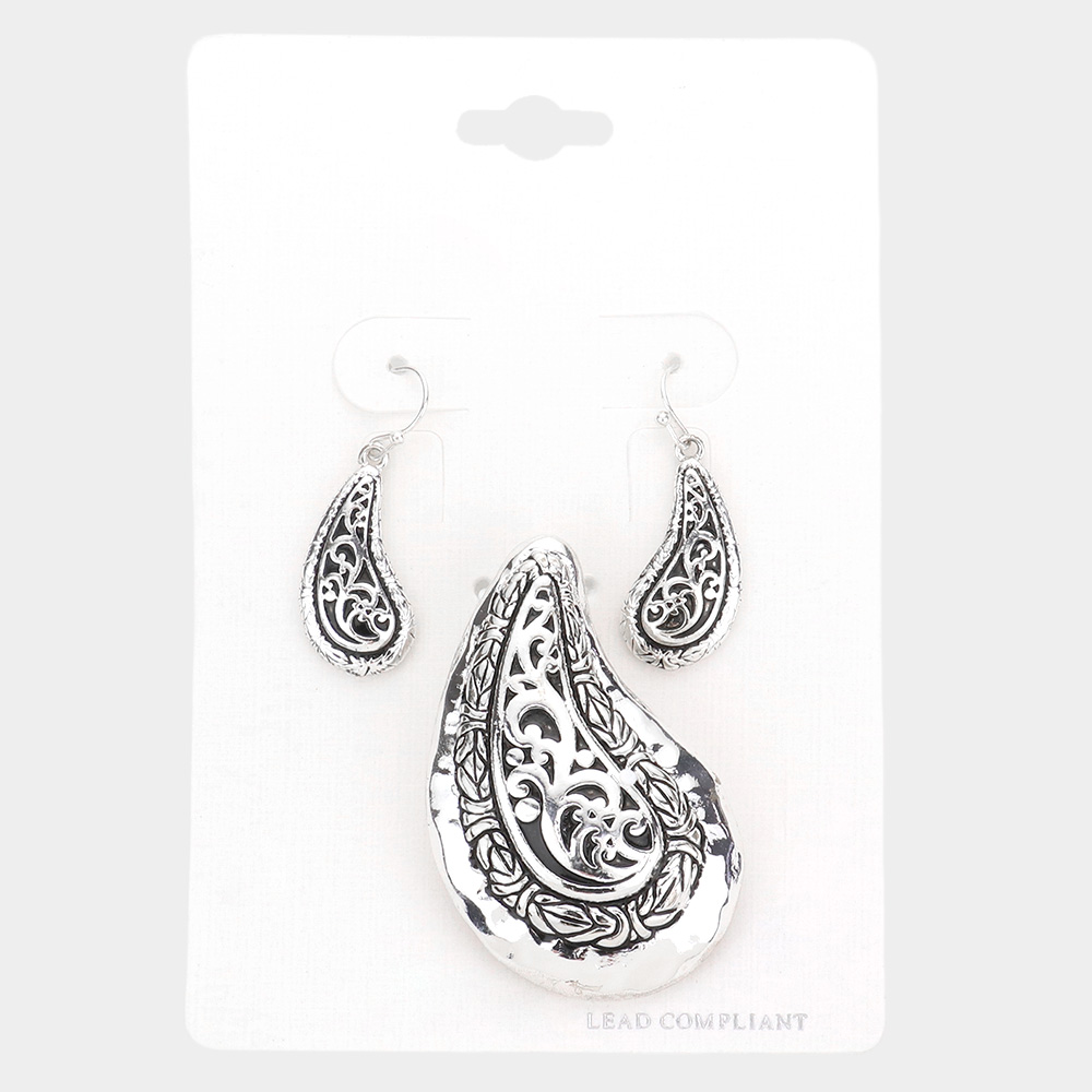 Metal Filigree Double Leaves Drop Dangle Earrings