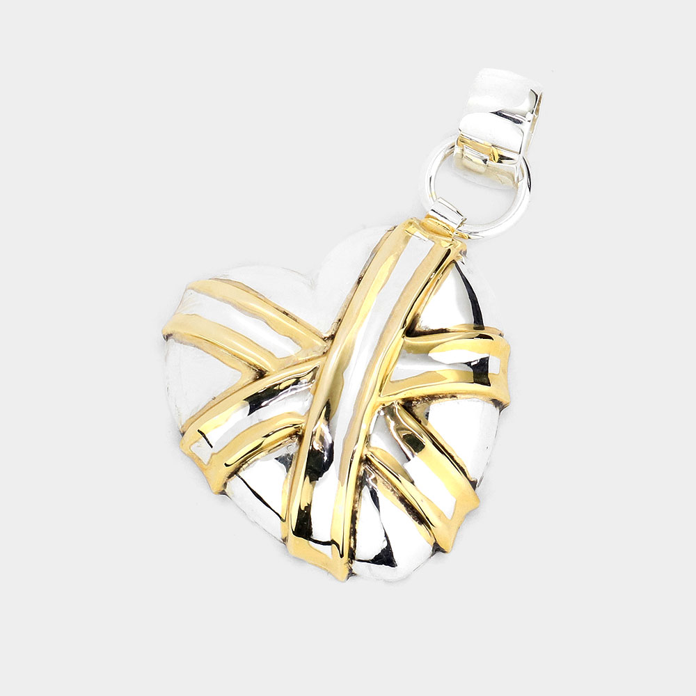 Antique Two Tone Metal Praying Hand Heart Dangle Earrings