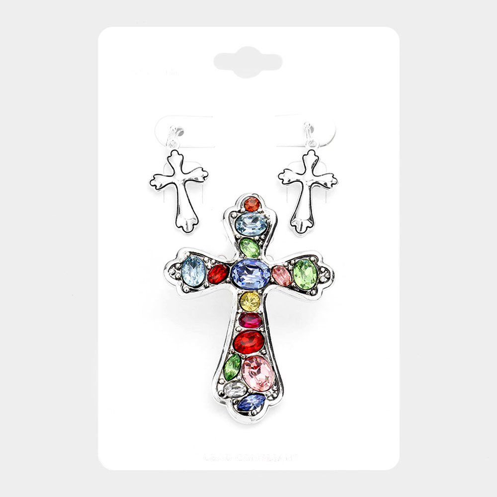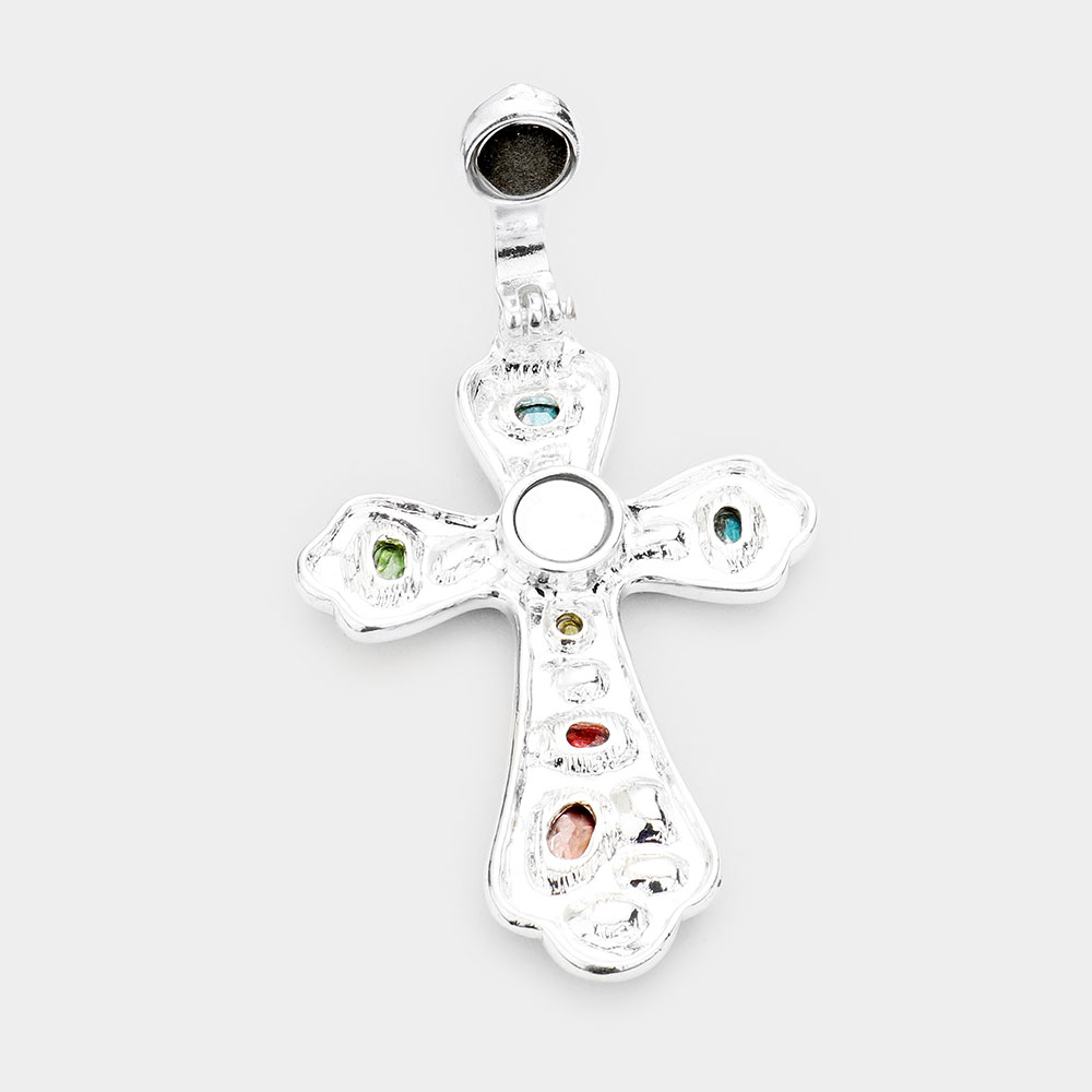 Cross Stone Cluster Charm Beaded Open Hoop Earrings