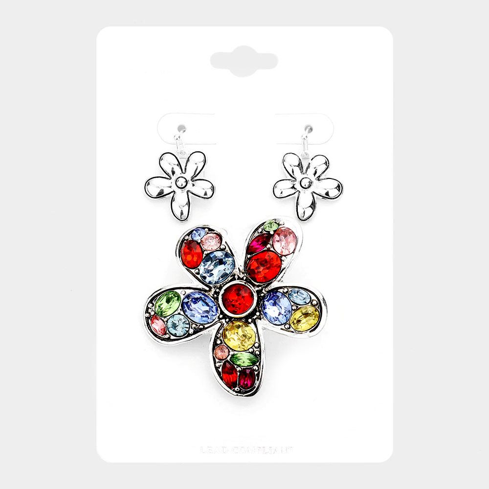 Multi Stone Flower Magnetic Pendant Set