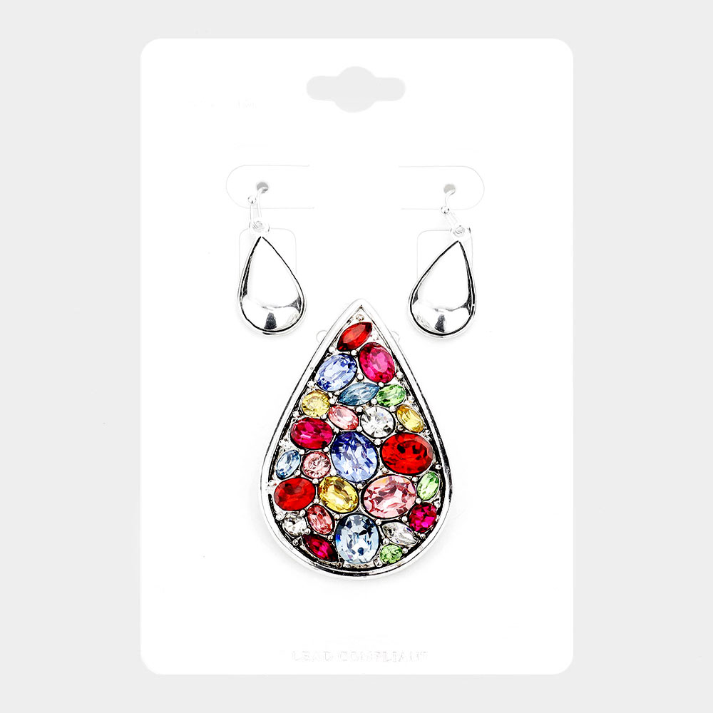 Multi Stone Teardrop Magnetic Pendant Set
