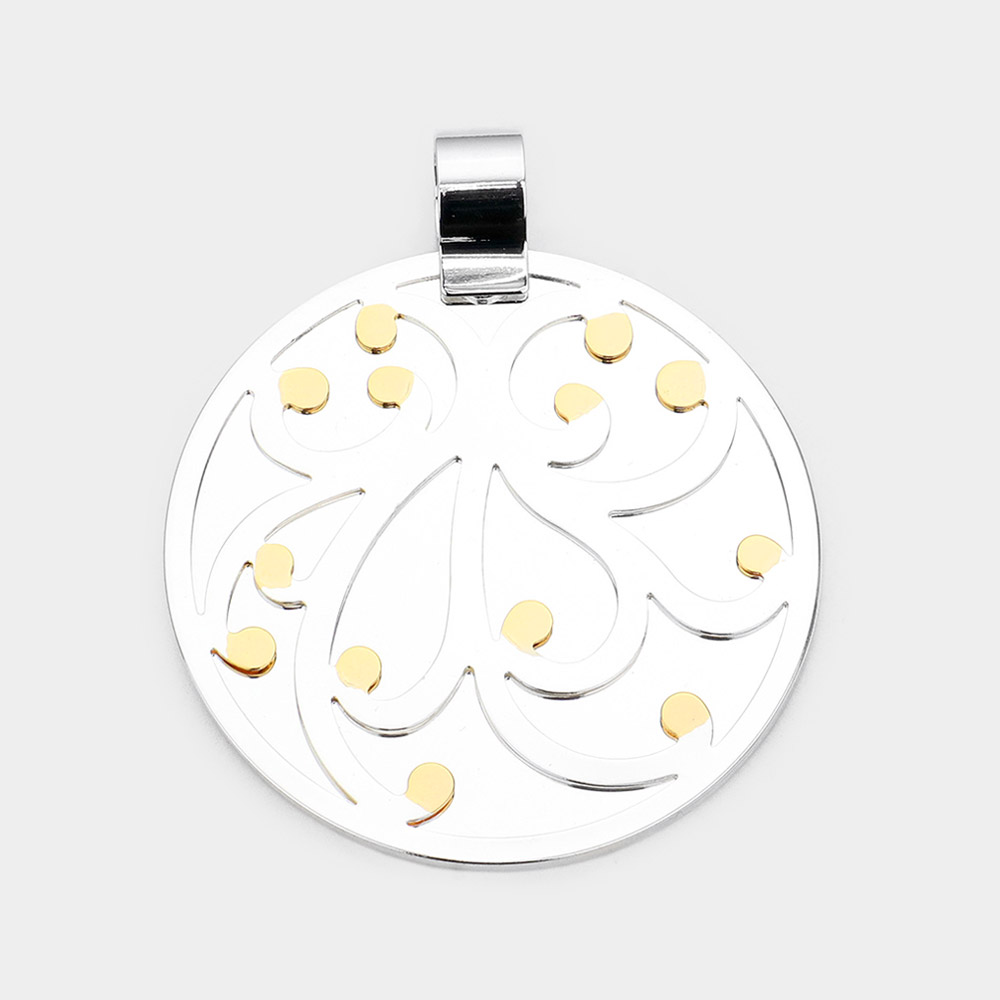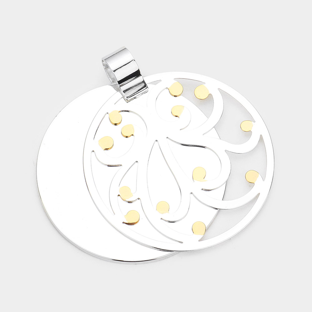 Pattern Detailed Metal Round Layered Pendant