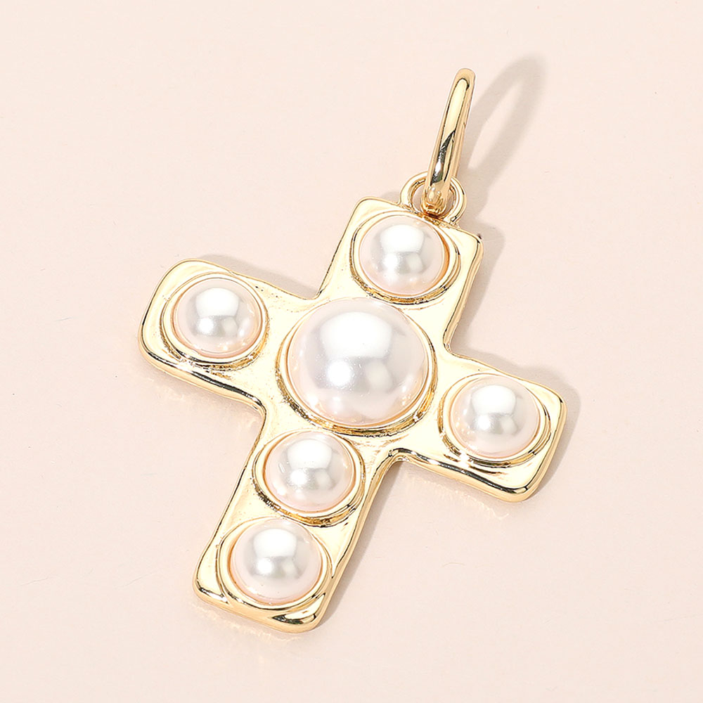Details • Size : 3" L, 2" X 2.4" • Elevate any look with this elegant cross pendant featuring polished pearl accents arranged in a bold, dimensional design. Its smooth, lustrous finish adds a refined touch, making it a timeless accessory for everyday style or meaningful gifting. A standout piece that blends classic charm with modern detail. • Lead and Nickel Compliant