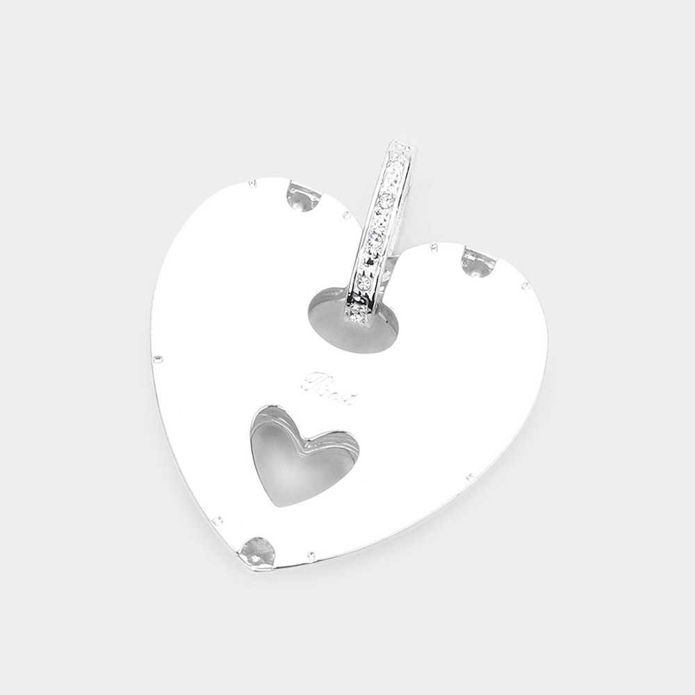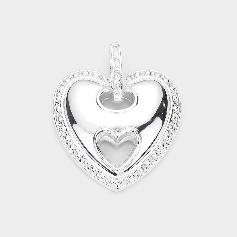 Rhinestone Embellished Shell Metal Heart Charm Station Toggle Bracelet