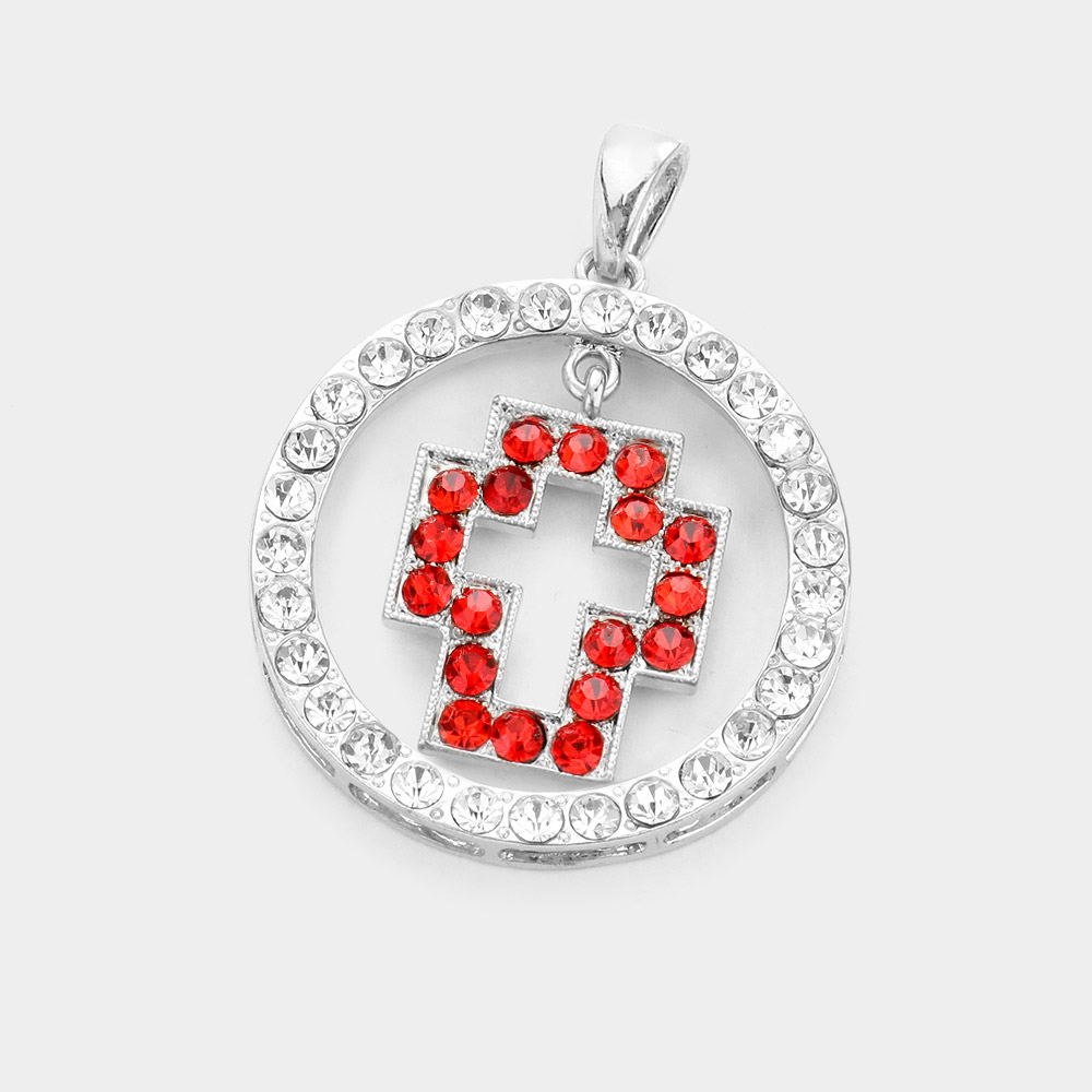 Round Stone Embellished Cutout Cross Pendant
