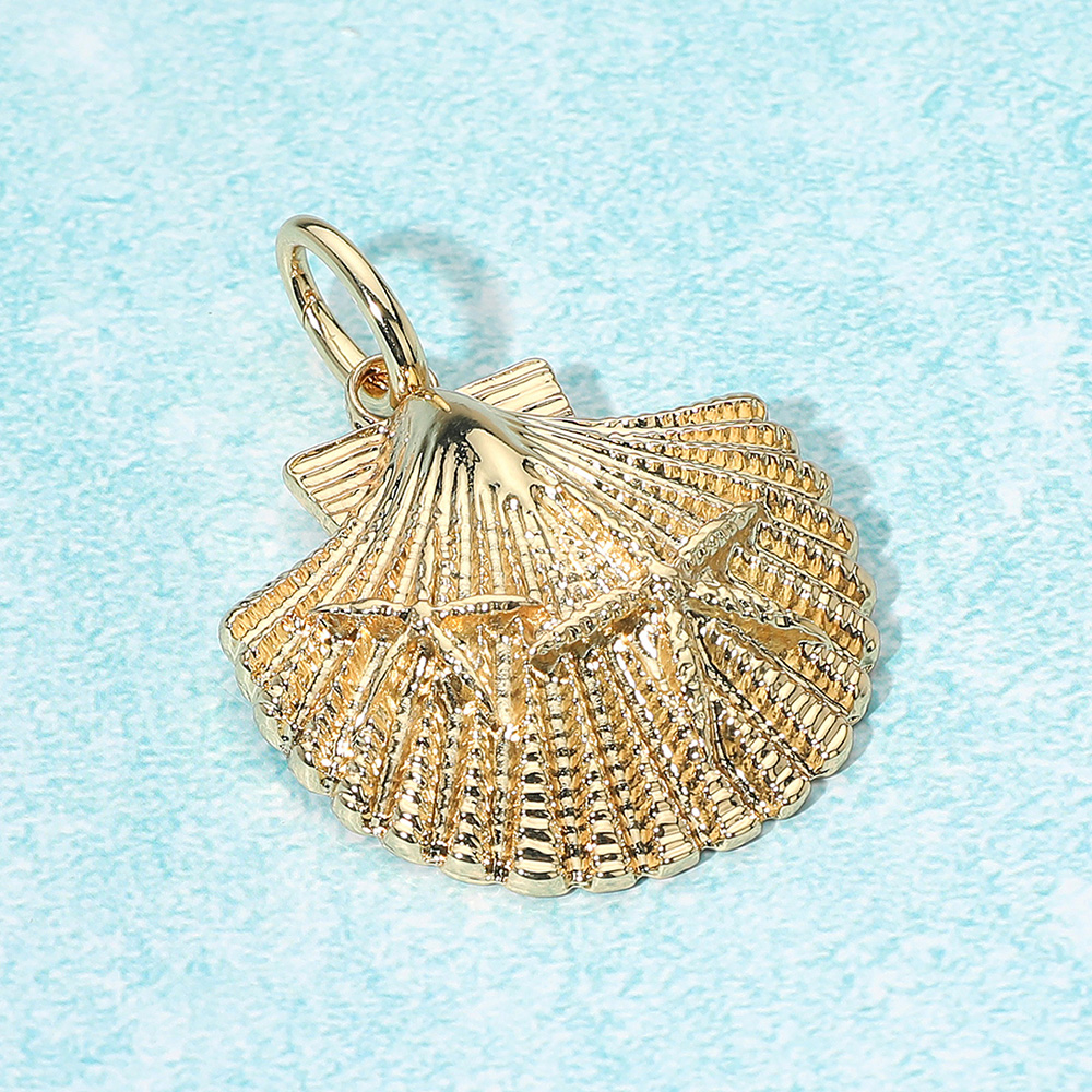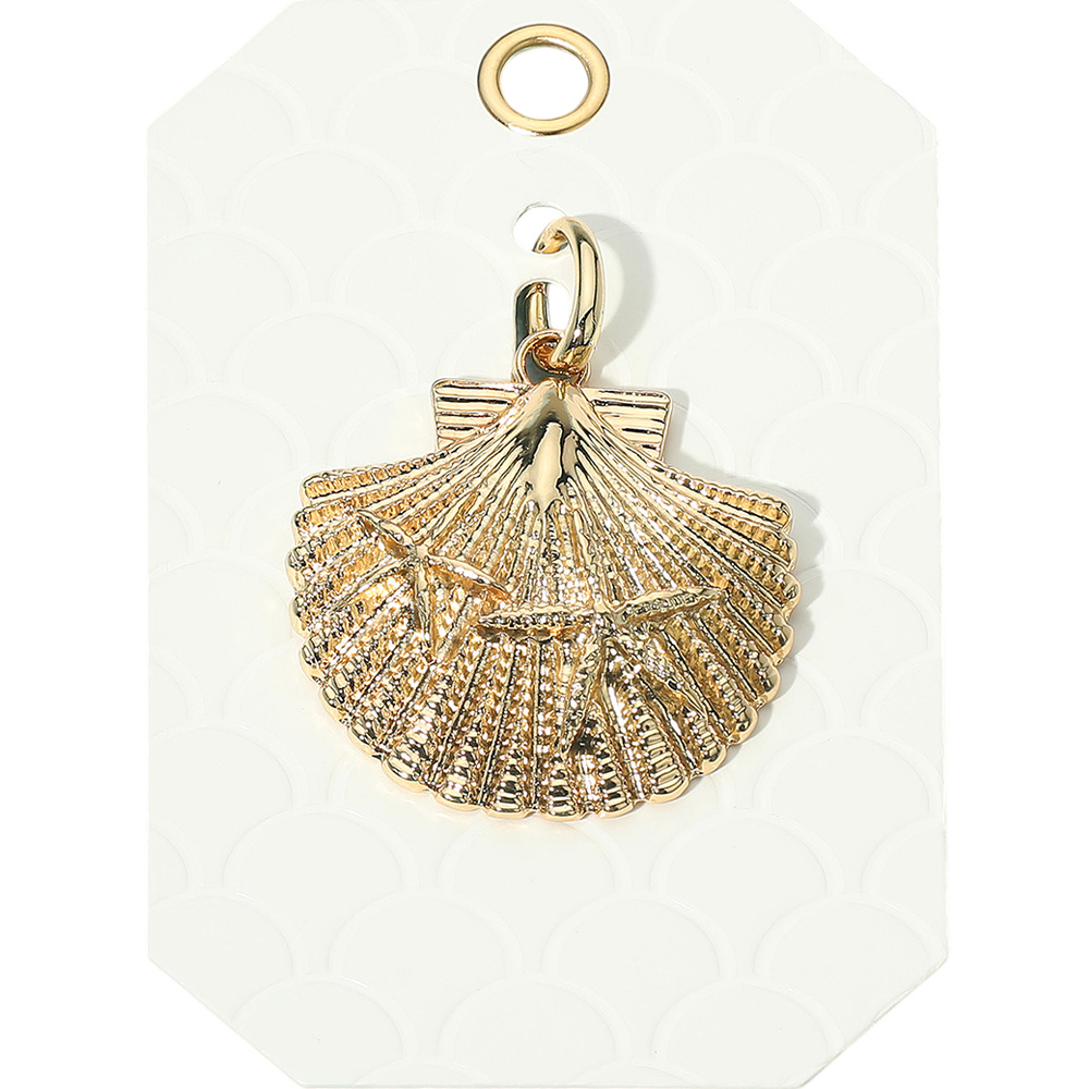 Details • Size : 2.6" L, 1.8" X 2" • Bring a touch of the ocean to your style with this seashell pendant charm, detailed with textured accents for a natural look. Perfect for attaching to necklaces, bracelets, or keychains, this charm captures seaside elegance and makes a thoughtful gift for beach lovers and coastal jewelry fans. • Lead and Nickel Compliant