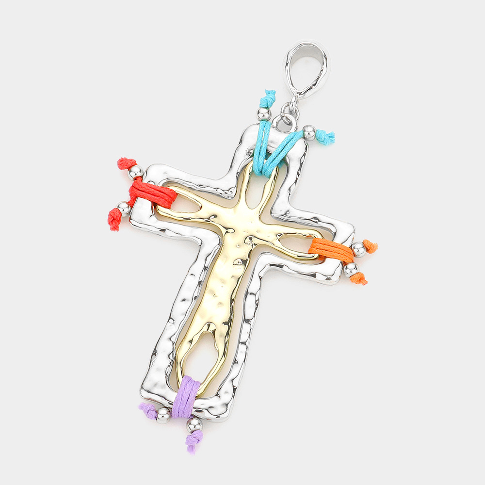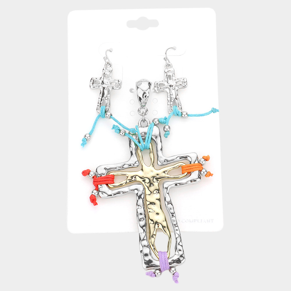 Stone Paved Cross Enamel Cherry Heart Mushroom Metal Butterfly Ceramic Flower Charm Station Double Layered Necklace