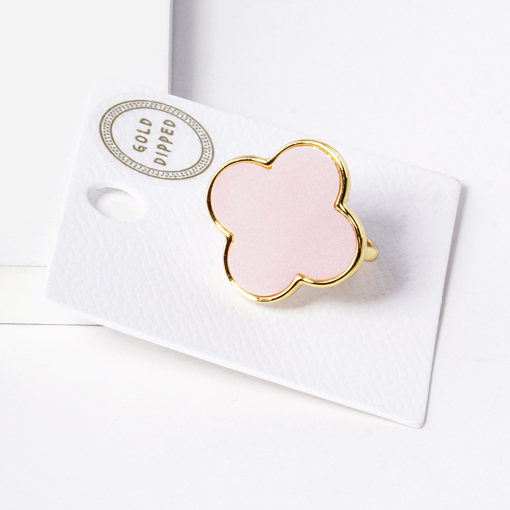 14K Gold Dipped Mother Of Pearl Quatrefoil Ring