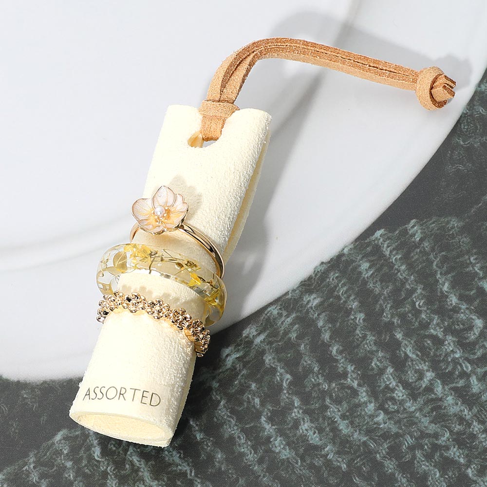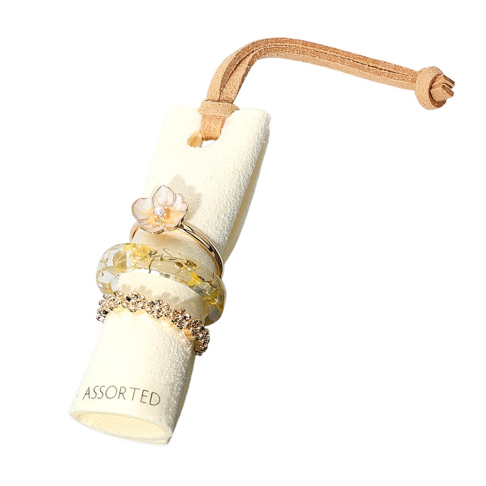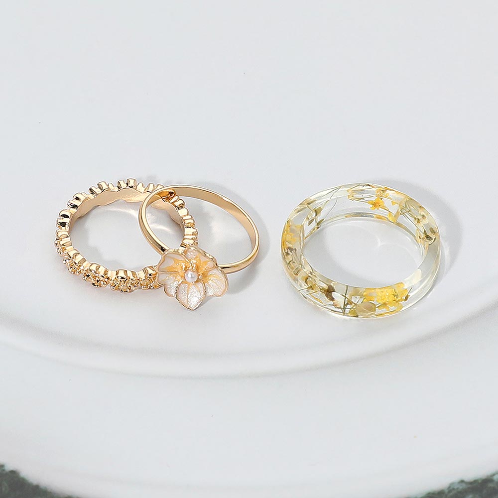 Details • Size : 0.2" - 0.4" H • Size 7 Only • A charming assorted ring set featuring a delicate floral ring, a clear resin band with embedded accents, and a textured stacking ring. Perfect for mixing and matching, gifting, or adding a playful, feminine touch to everyday looks with a unique blend of styles and textures. • Lead and Nickel Compliant
