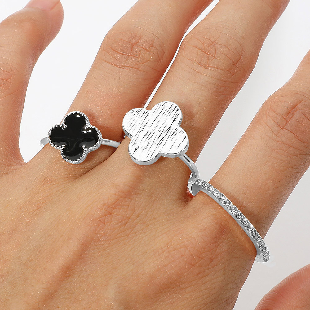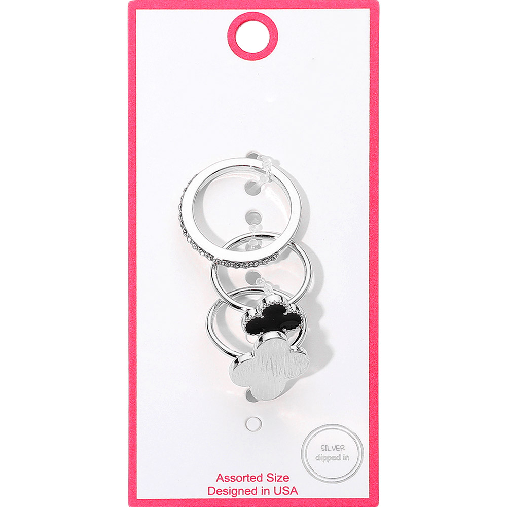 Details • Size : 0.1" - 0.6" H • Size 7 Only • Stylish set of 3 stackable rings featuring a smooth band, crystal detail, and clover charm. Designed for versatile wear and perfect for mixing and matching. Elegant finish ideal for casual or dressy looks.