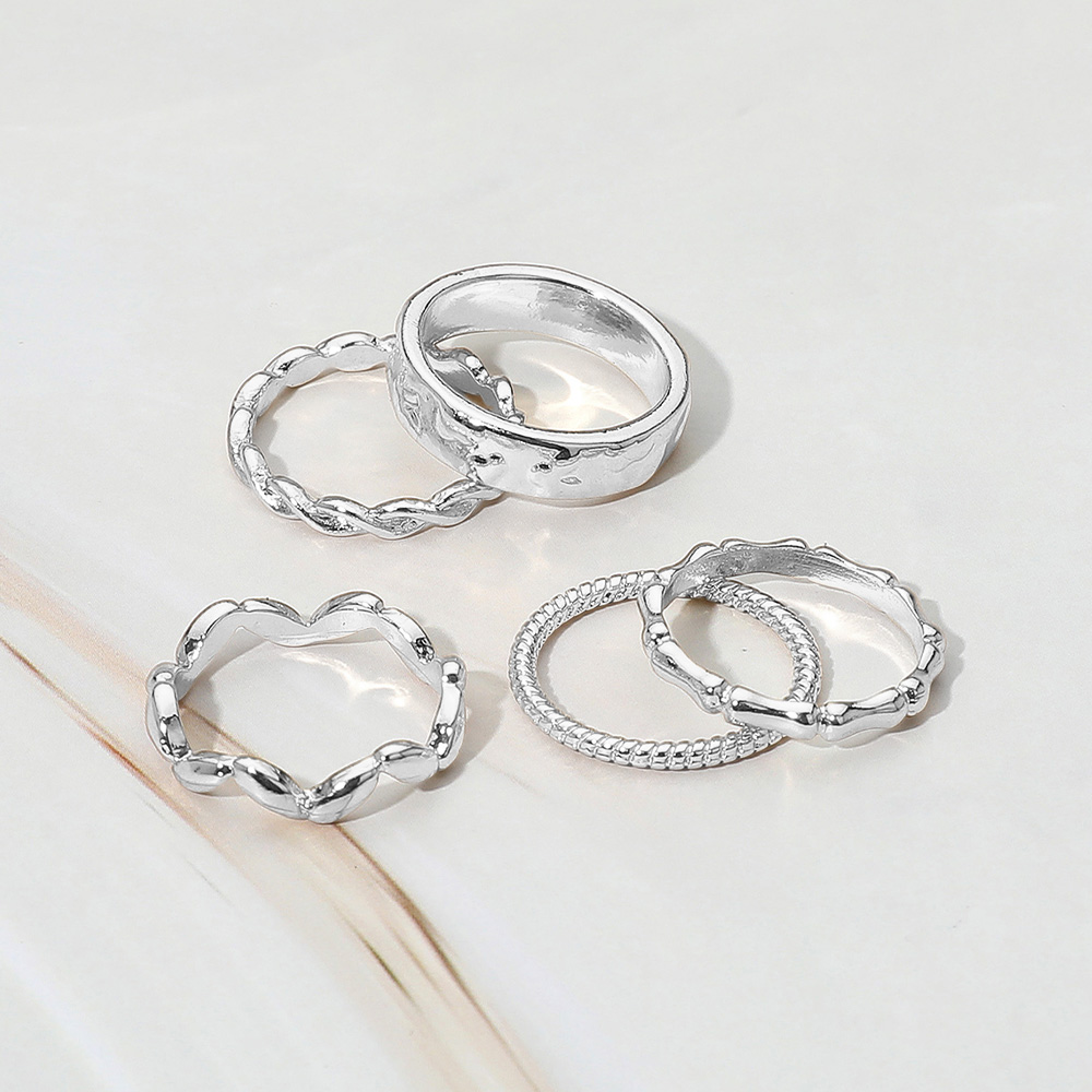 Details • Size : 0.1" - 0.25" H • Size 7 Only • This set of five stackable rings features a variety of textures and patterns, from twisted bands to smooth and hammered finishes. Perfect for mixing and matching, these rings add a versatile touch of style that works beautifully for both casual and dressy looks. • Lead and Nickel Compliant