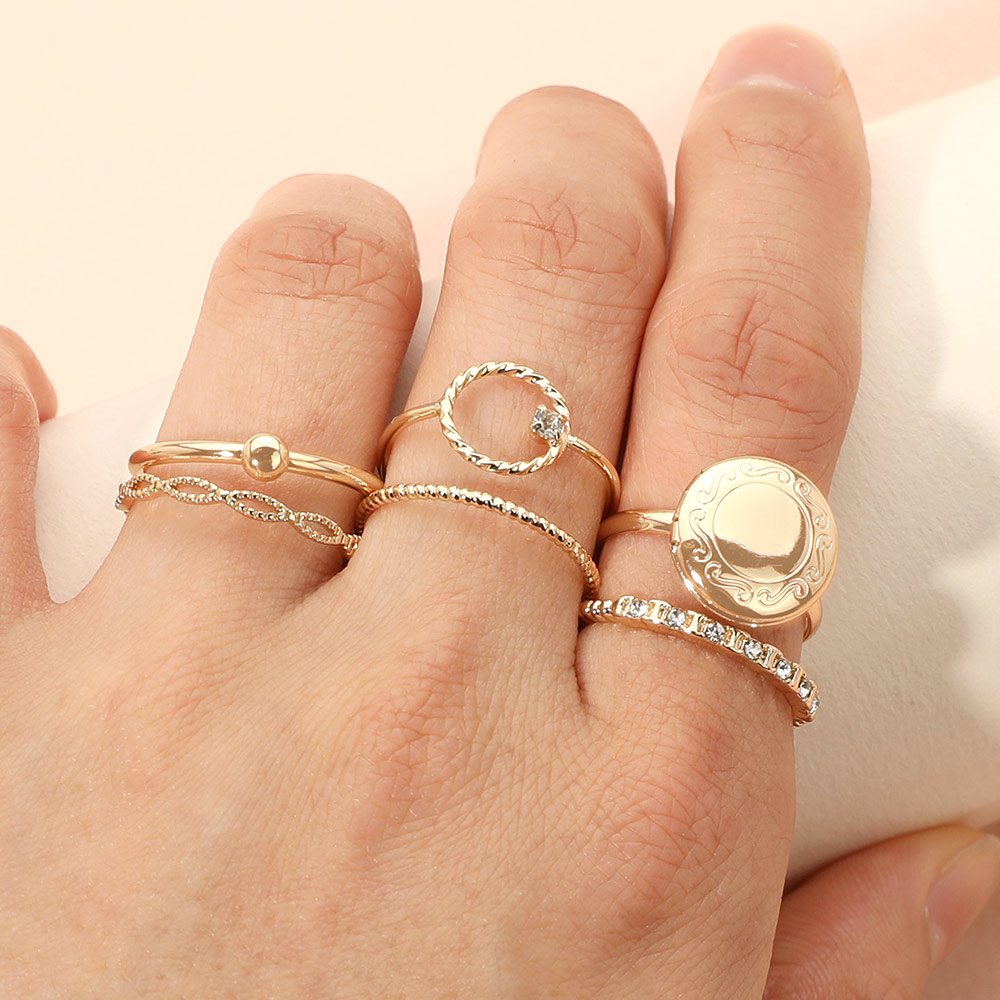 6PCS - Metal Round Locket Stone Paved Dainty Stackable Ring Set