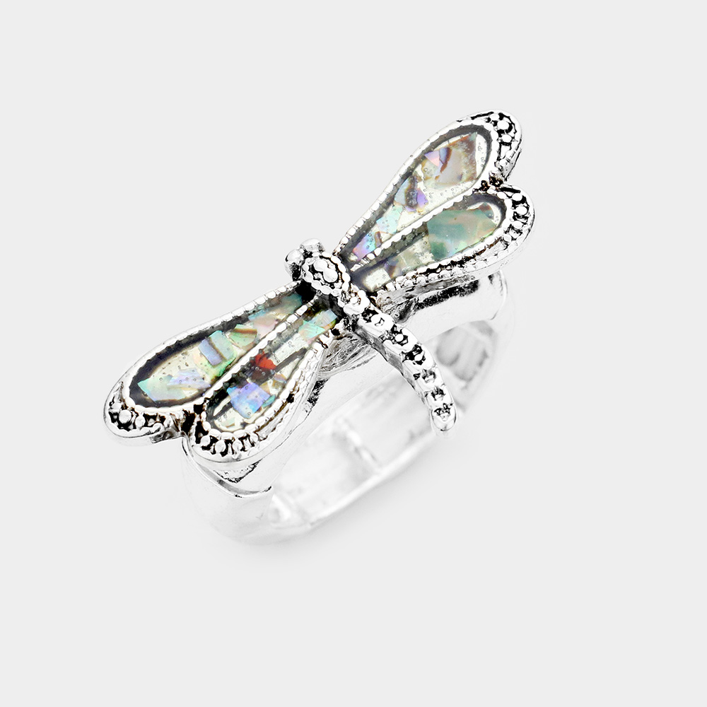 Abalone Embossed Metal Butterfly Pendant Necklace