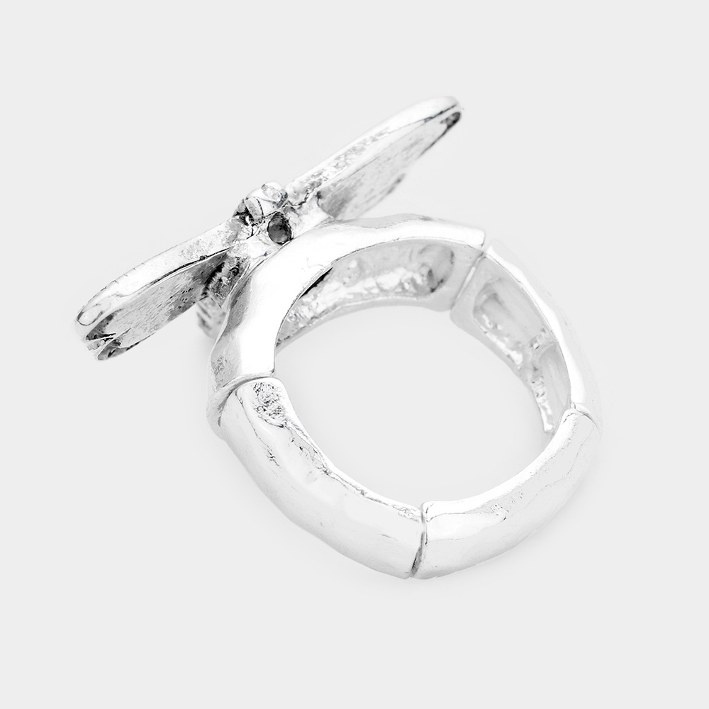Stone Pointed Metal Cutout Triple Butterfly Link Dropdown Earrings