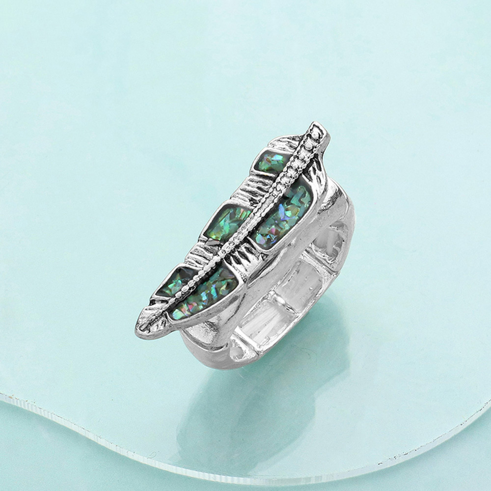 Antique Metal Abalone Palm Tree Circle Dangle Earrings