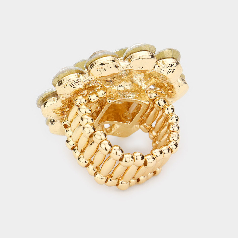 Square Glass Stone Embellished Bling Studded Pointed Cuff Bracelet