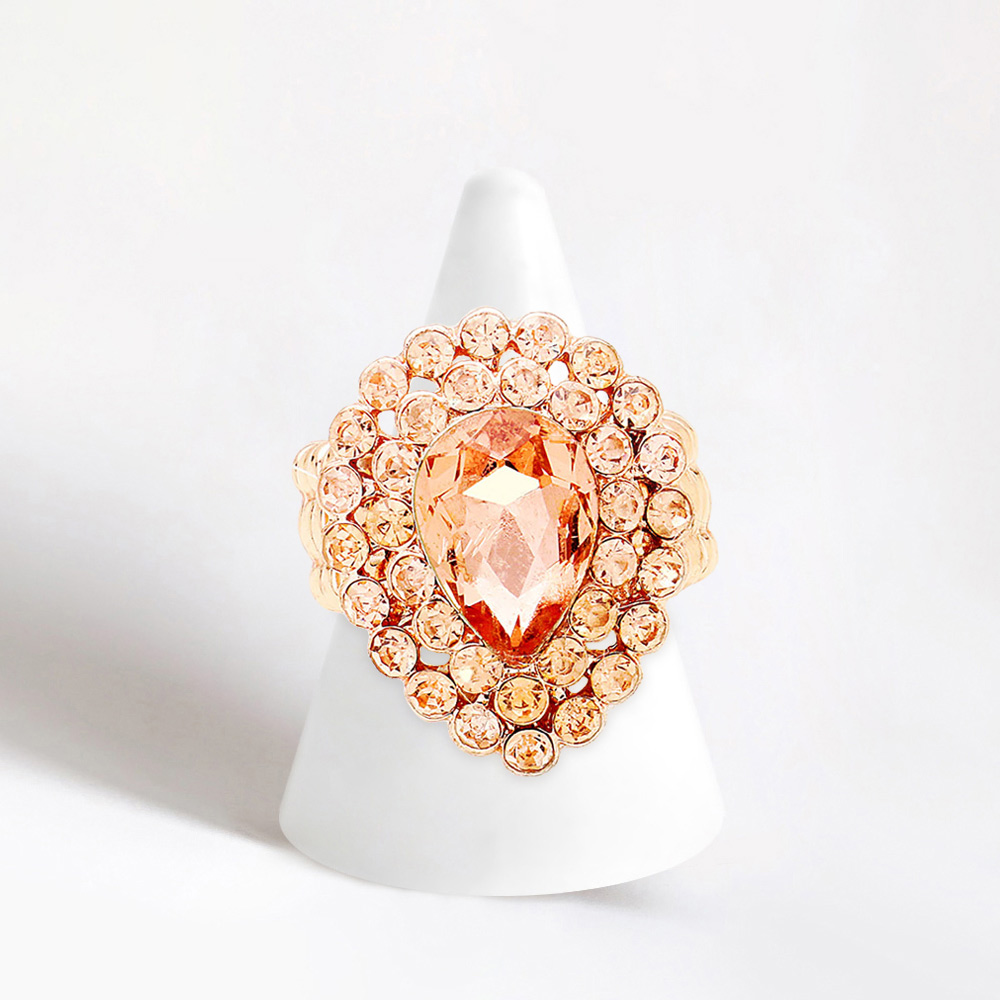 Crystal Teardrop Centered Bubble Cluster Stretch Ring