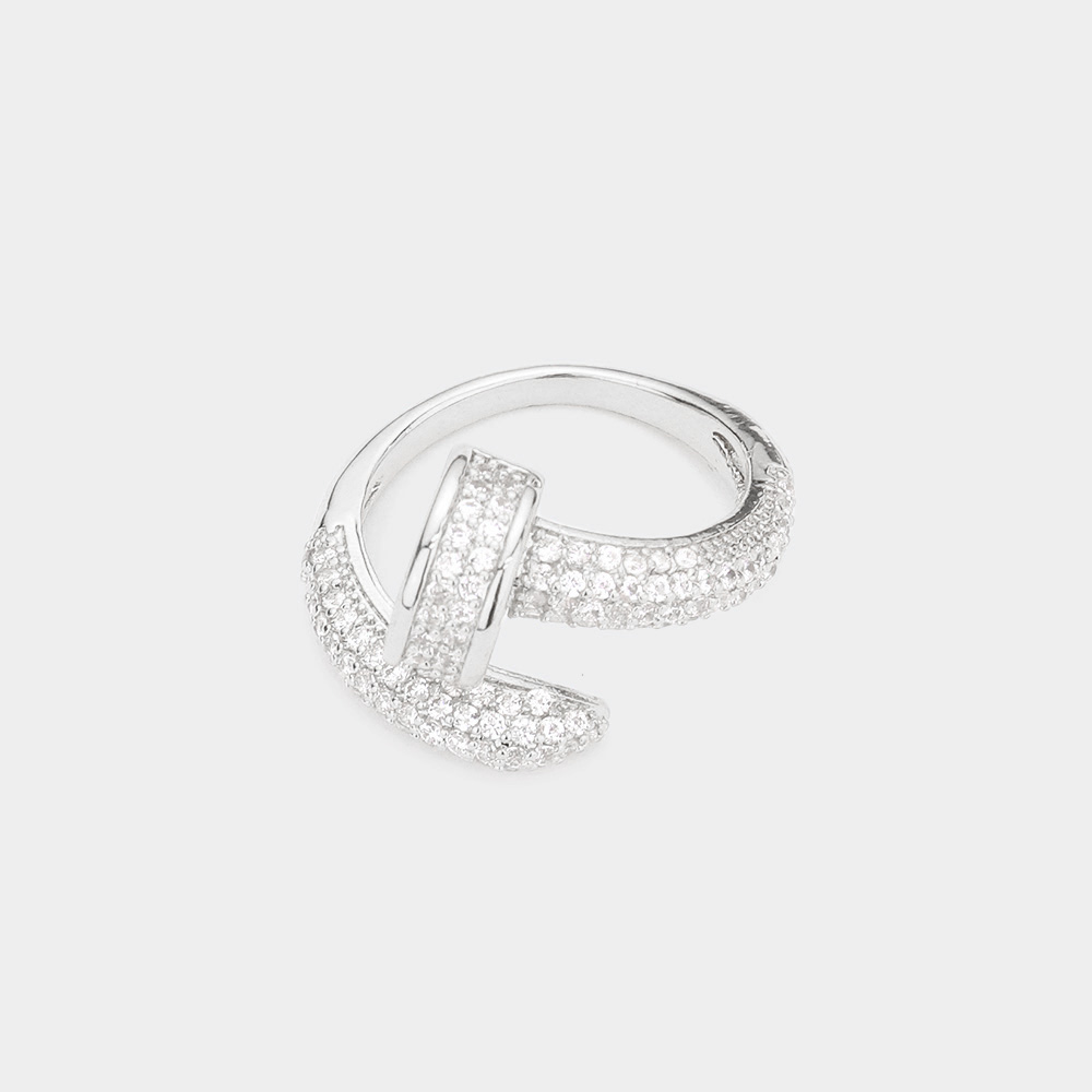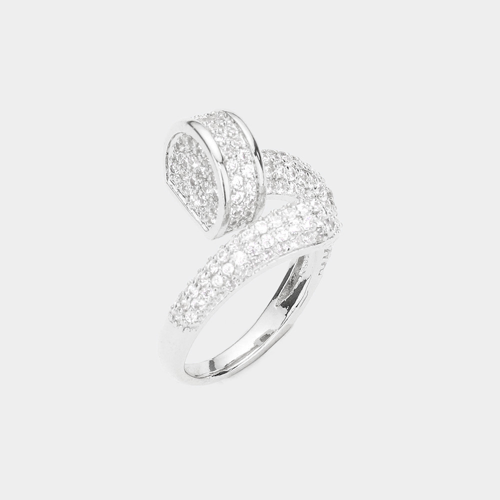 Round Stone Centered Rhinestone Flower Stretch Ring