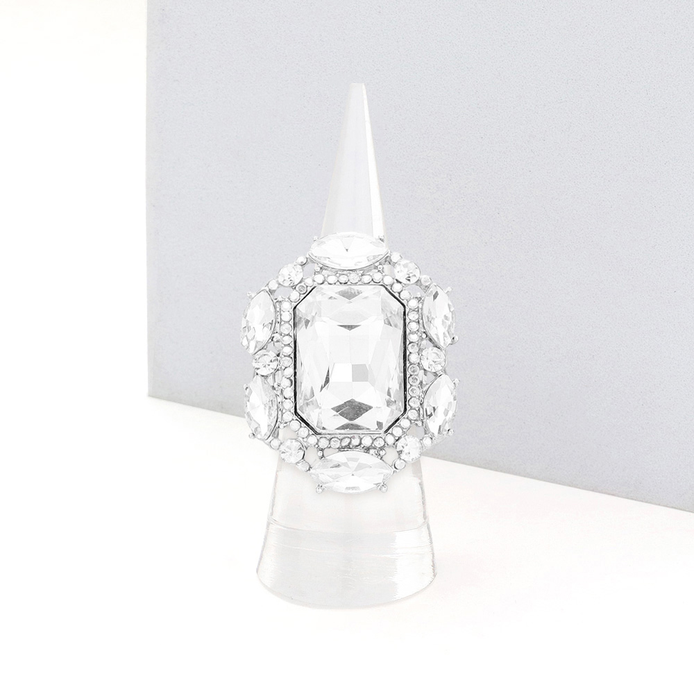 Wide Rhinestone Embellished Leaf Pattern Hinged Cuff Bracelet