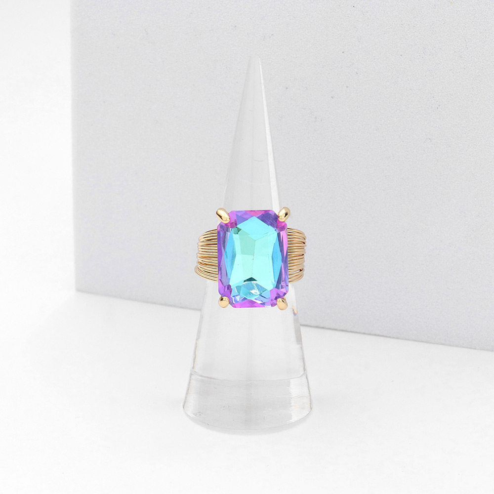 Details • Size : 0.5" X 0.7" • Adjustable • Make a bold impression with this rectangular stone cocktail ring, featuring a faceted centerpiece set in a textured band. A perfect balance of sophistication and edge, ideal for elevating both casual and evening looks. • Lead and Nickel Compliant