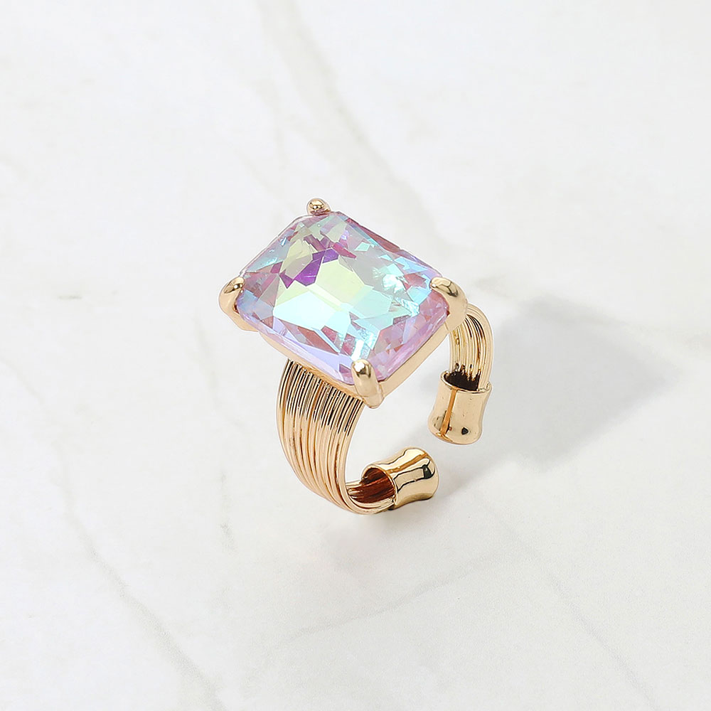Details • Size : 0.5" X 0.7" • Adjustable • Make a bold impression with this rectangular stone cocktail ring, featuring a faceted centerpiece set in a textured band. A perfect balance of sophistication and edge, ideal for elevating both casual and evening looks. • Lead and Nickel Compliant
