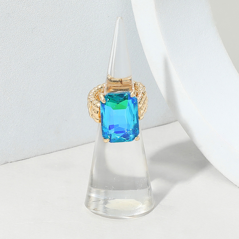 Details • Size : 0.75" H • Stretchable • Make a bold impression with this statement ring, featuring a faceted emerald-cut center stone set on a textured band. Combining elegance with modern design, it’s perfect for adding refined style to both everyday outfits and special-occasion looks. • Lead and Nickel Compliant