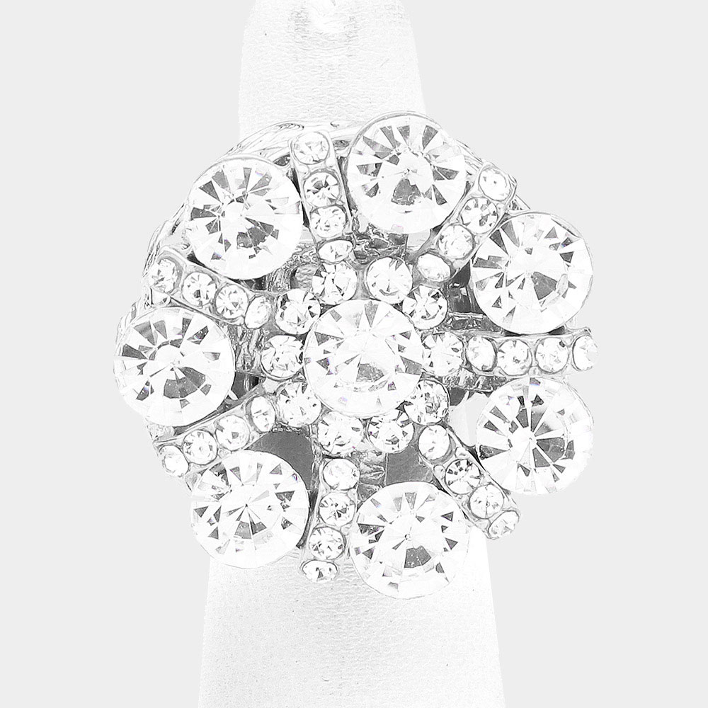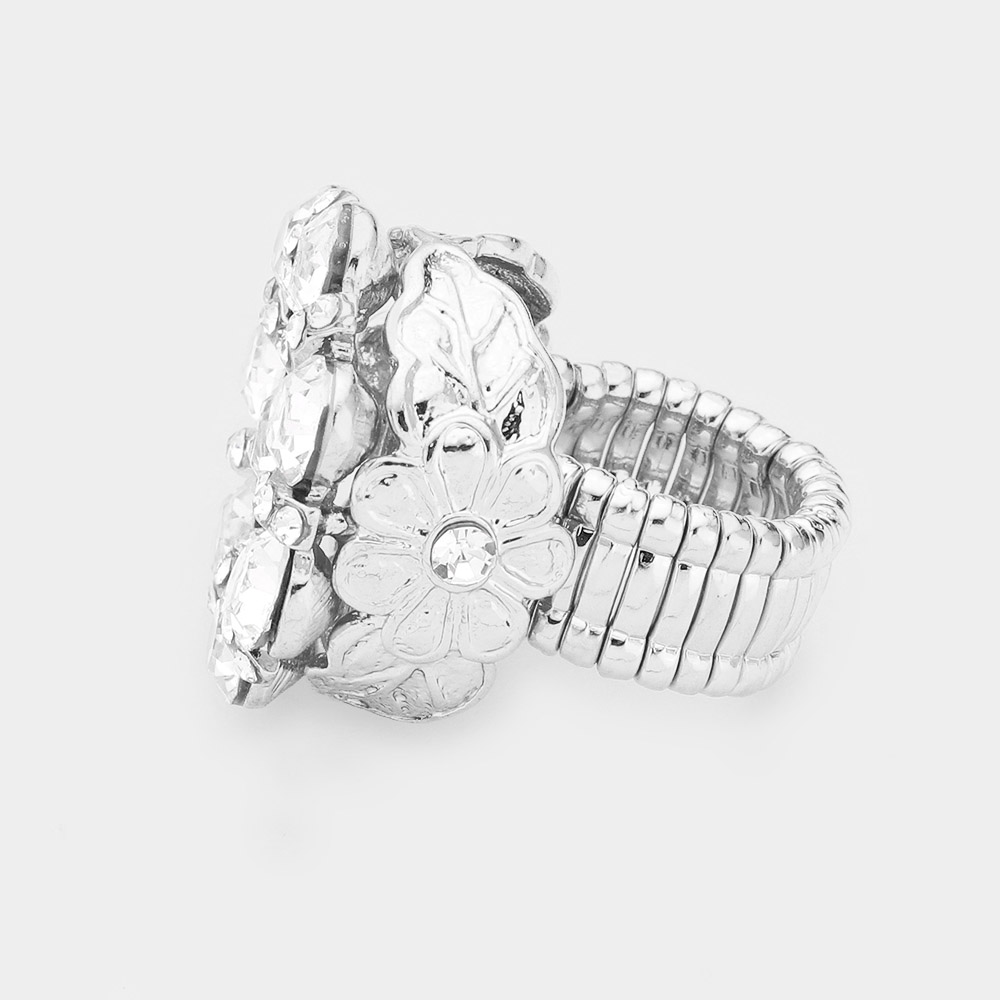 Floral Crystal Rhinestone Pave Stretch Ring