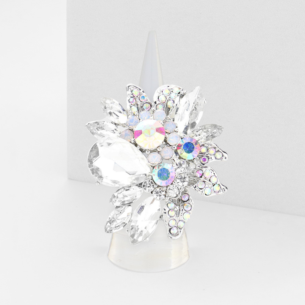 Floral Teardrop Glass Crystal Stretch Evening Bracelet