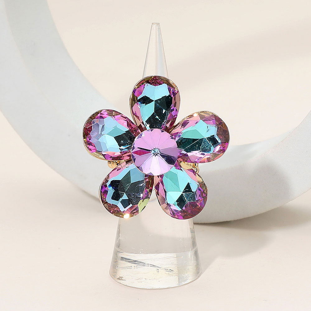 • Elegant flower-shaped statement ring featuring a dazzling faceted petal design that catches the light beautifully. Perfect for adding a bold, eye-catching accent to any outfit, this gem-inspired accessory enhances your style with its unique shape and sparkling radiance.
