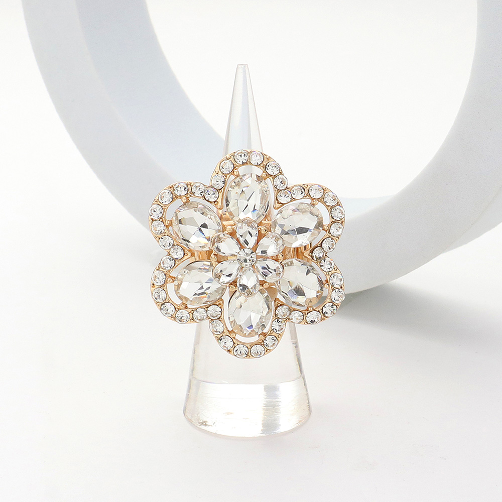 Round Glass Stone Pointed Stone Paved Flower Pin Brooch