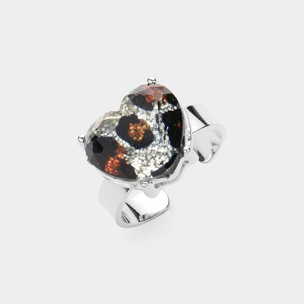 Glitter Leopard Pattern Heart Stone Adjustable Ring