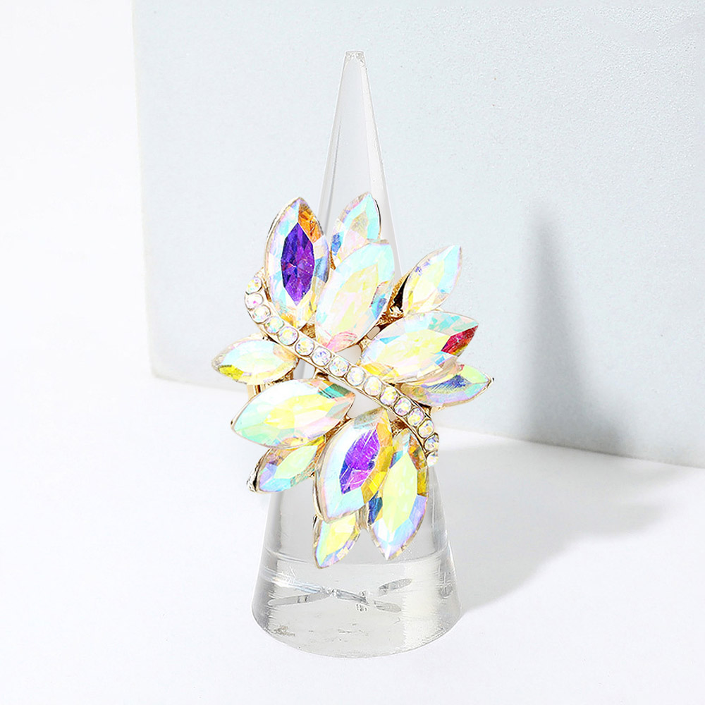 • Shine bright with a statement cocktail ring designed in a striking crystal leaf motif. Featuring multi-faceted stones and dazzling sparkle, this glamorous accessory is perfect for parties, special occasions, or elevating everyday outfits with bold elegance.