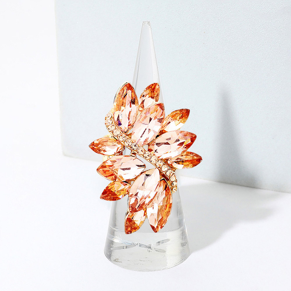 • Shine bright with a statement cocktail ring designed in a striking crystal leaf motif. Featuring multi-faceted stones and dazzling sparkle, this glamorous accessory is perfect for parties, special occasions, or elevating everyday outfits with bold elegance.