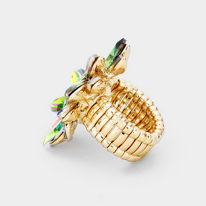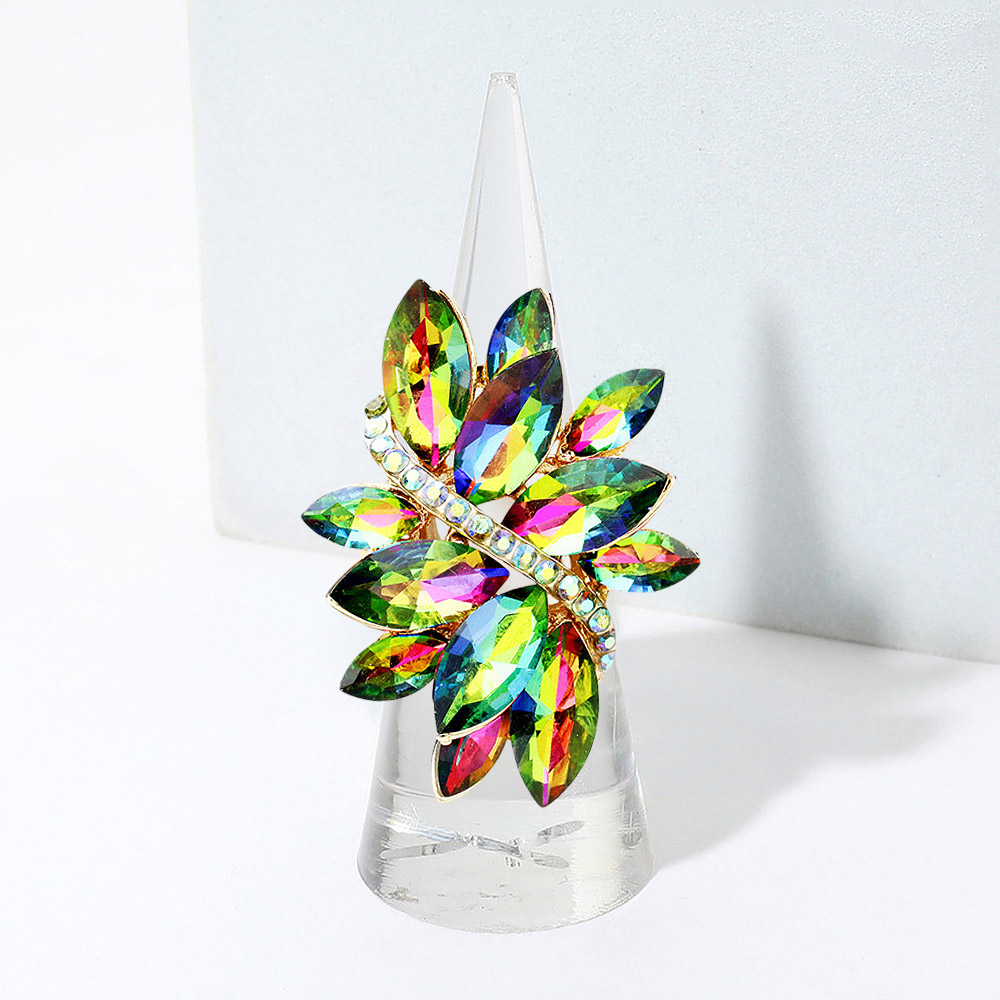 Details • Size : 1" X 1.5" • Stretchable • Shine bright with a statement cocktail ring designed in a striking crystal leaf motif. Featuring multi-faceted stones and dazzling sparkle, this glamorous accessory is perfect for parties, special occasions, or elevating everyday outfits with bold elegance.