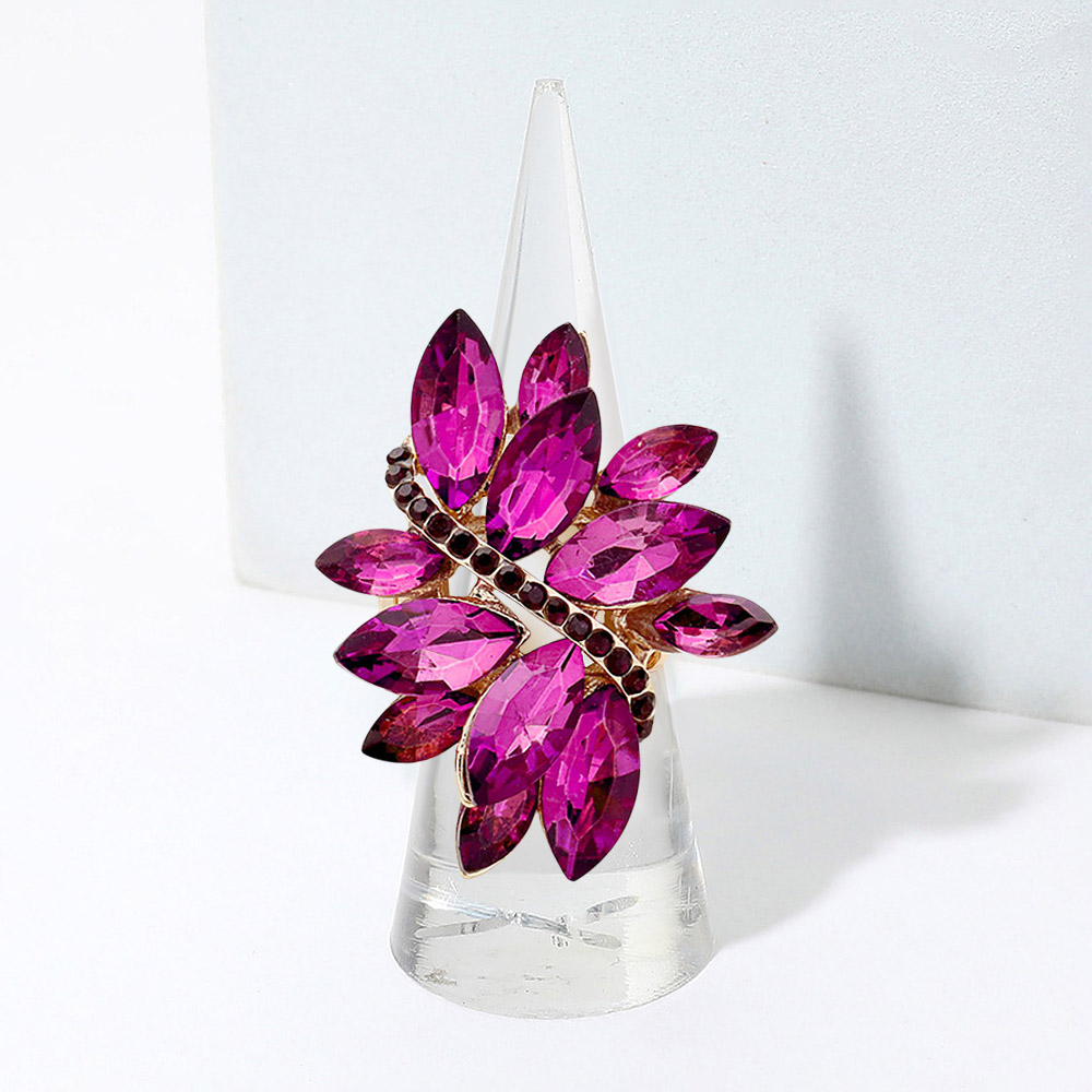 • Shine bright with a statement cocktail ring designed in a striking crystal leaf motif. Featuring multi-faceted stones and dazzling sparkle, this glamorous accessory is perfect for parties, special occasions, or elevating everyday outfits with bold elegance.