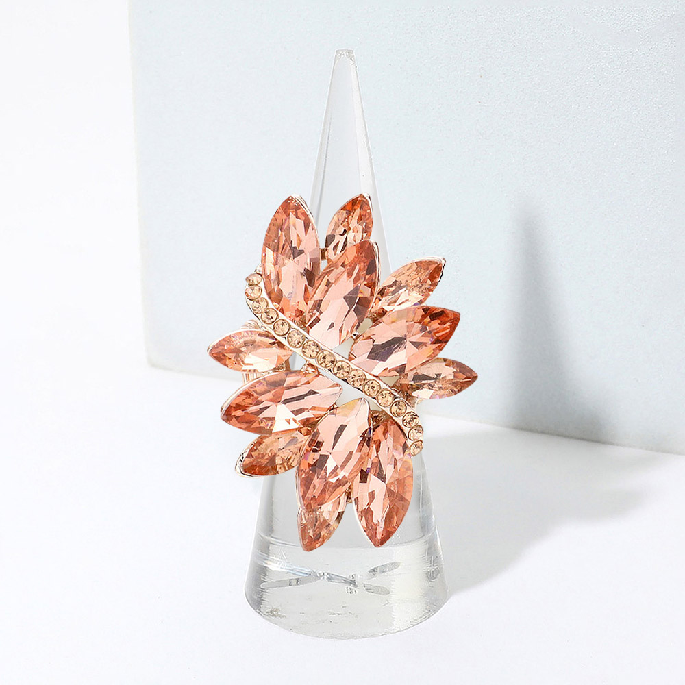 Details • Size : 1" X 1.5" • Stretchable • Shine bright with a statement cocktail ring designed in a striking crystal leaf motif. Featuring multi-faceted stones and dazzling sparkle, this glamorous accessory is perfect for parties, special occasions, or elevating everyday outfits with bold elegance.